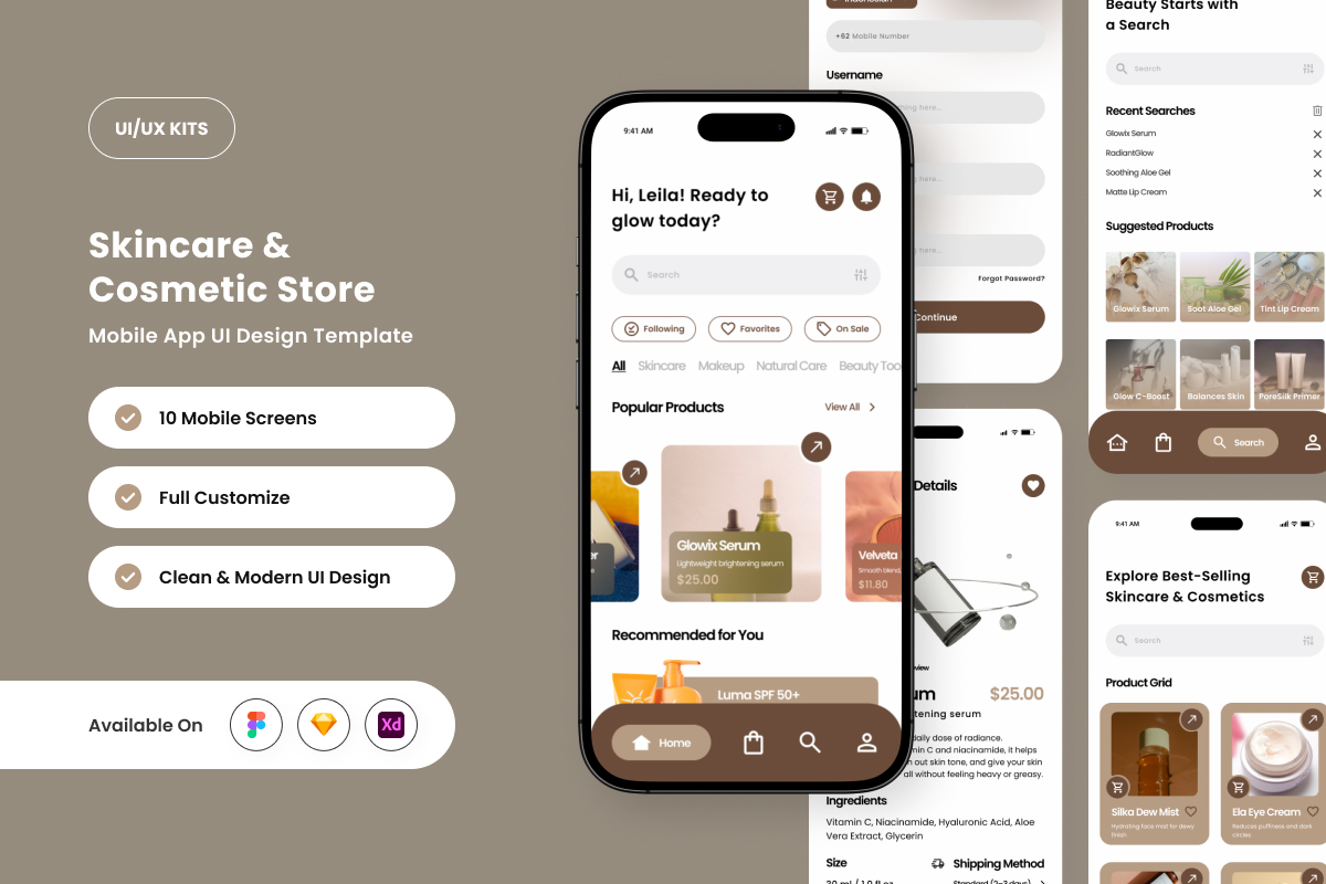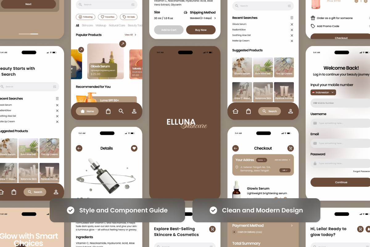 Elluna – Skincare Store Mobile UI App Design Template UI Element