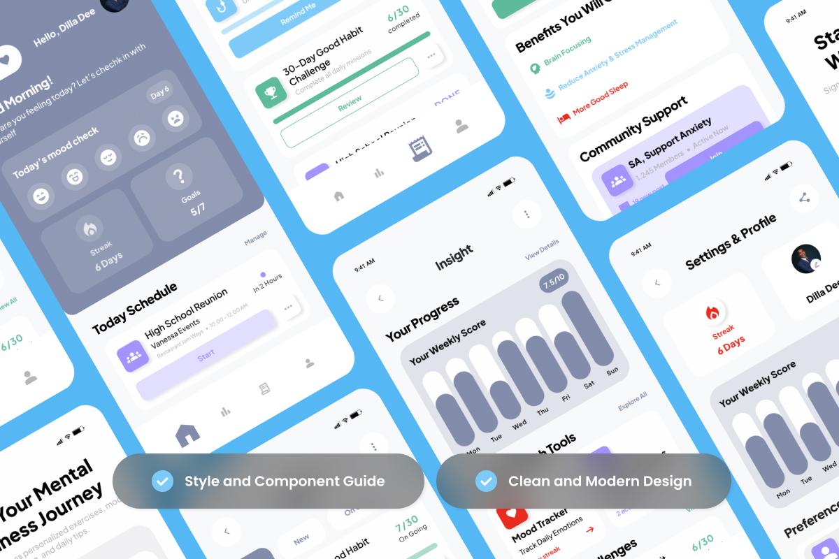 Elysm is crafted for meditation and mindfulness-focused applications, combining a minimal design system with a relaxing visual mood. This UI kit is ideal for guided meditation apps, affirmation platforms, or mood-tracking tools that promote emotional stability and self-reflection. Elysm makes it simple for designers to deliver intuitive and inclusive wellness solutions that support stress relief and long-term personal growth. Perfect for freelancers, agencies, and wellness innovators.**Highlights:**