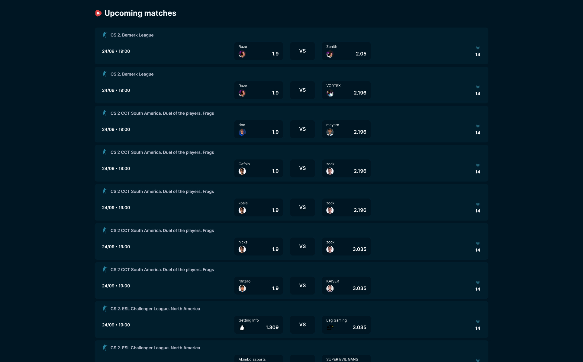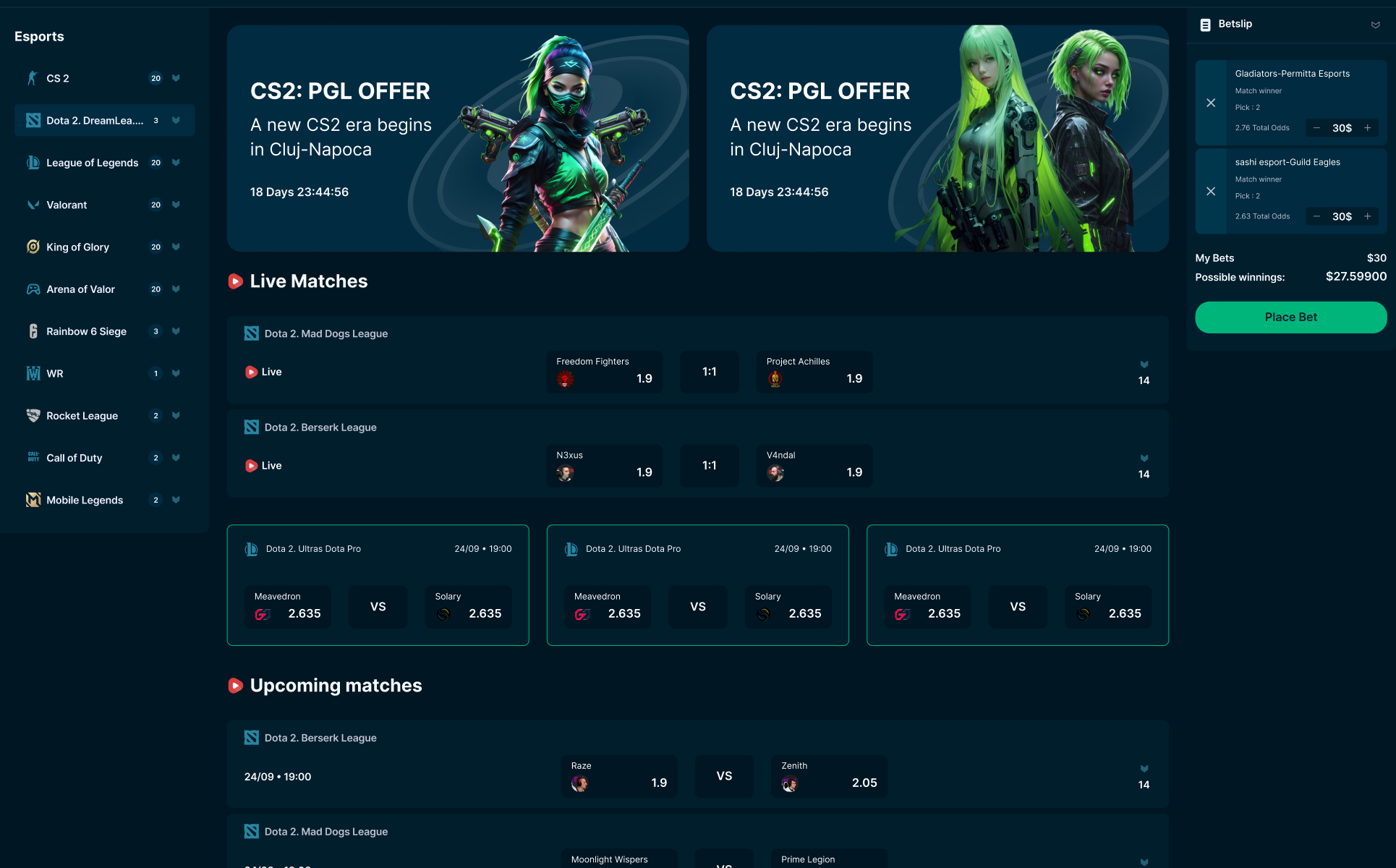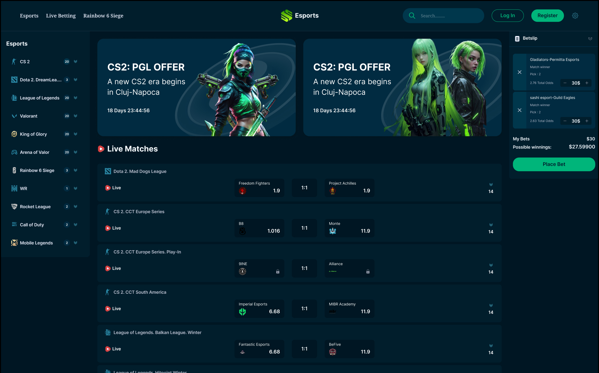 You can wager on a wide range of esport games, such as League of Legends, Dota 2, CS:GO, Call of Duty, Overwatch, and many more. We make sure there is always something thrilling to bet on by covering important tournaments and events in a variety of gaming genres.
