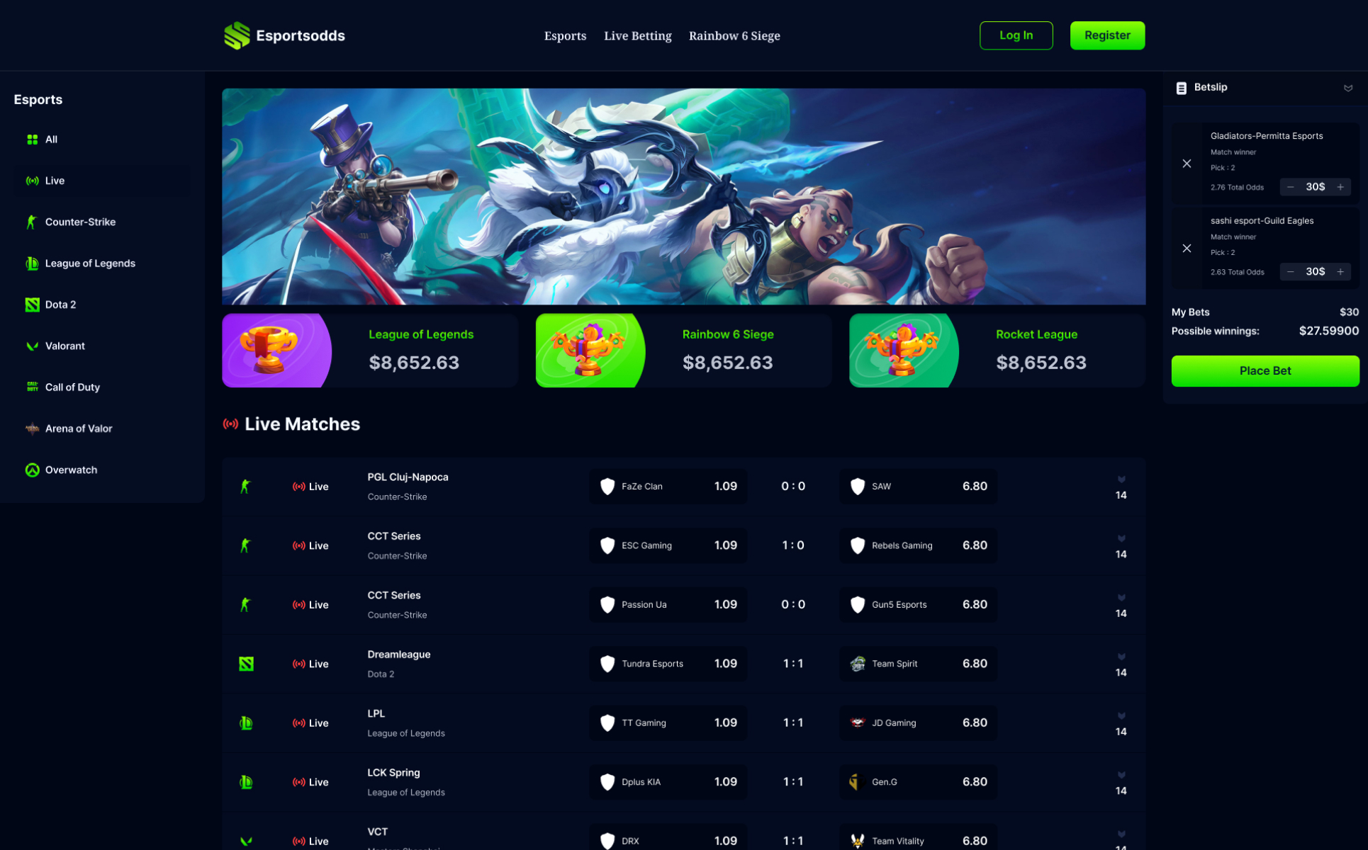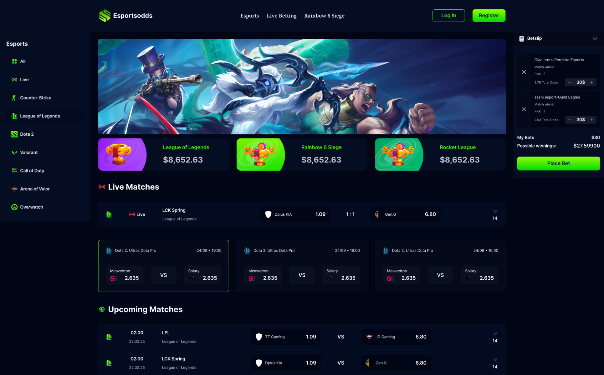 Welcome to Esportsodds - Esports Gambling Figma Template.
