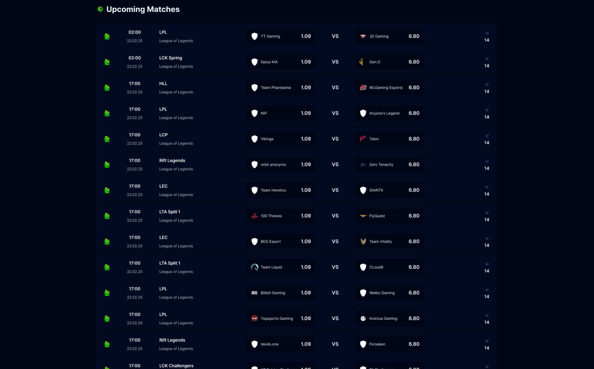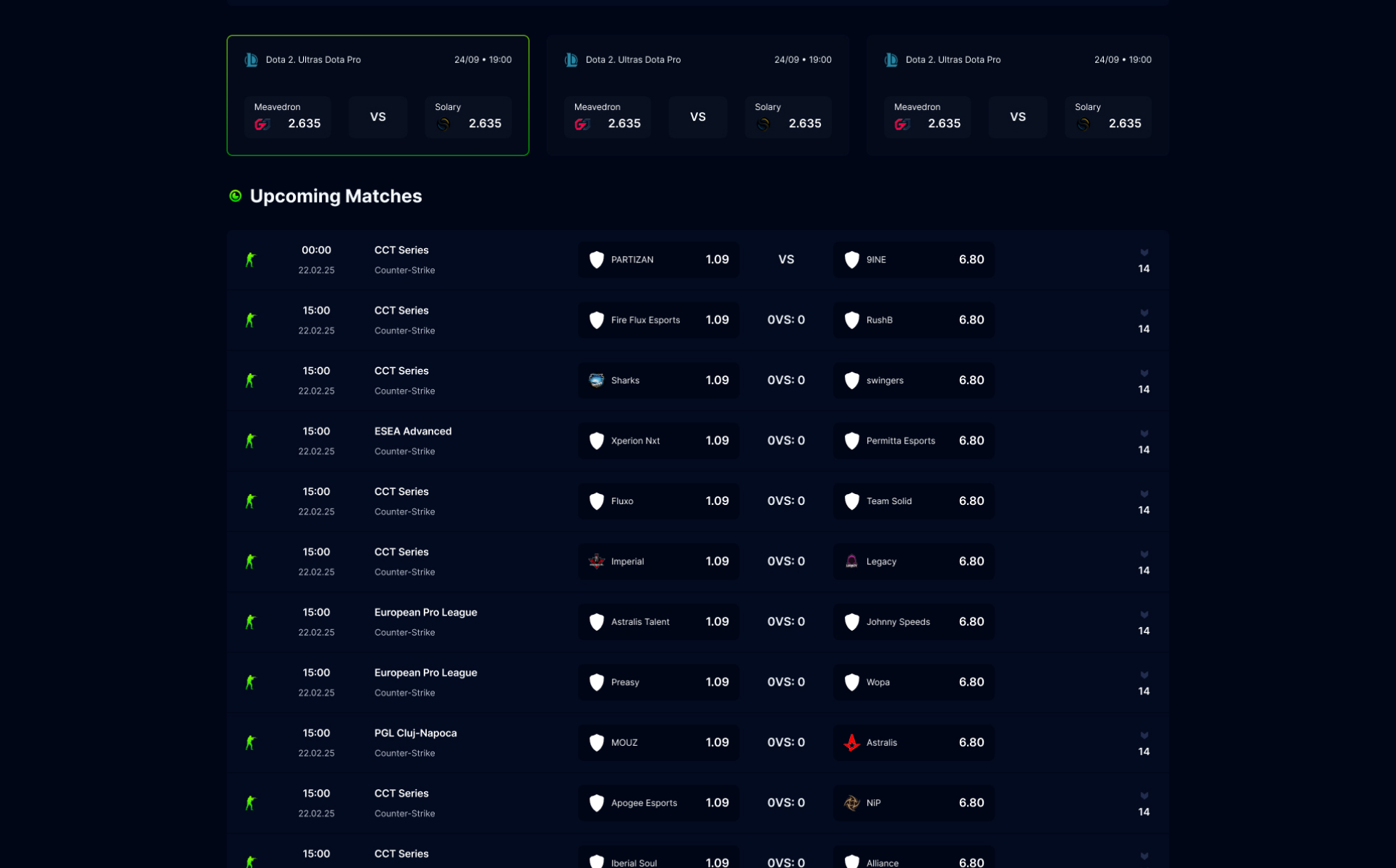 Esportsodds - Esports Betting Gambling Figma Template UI Element
