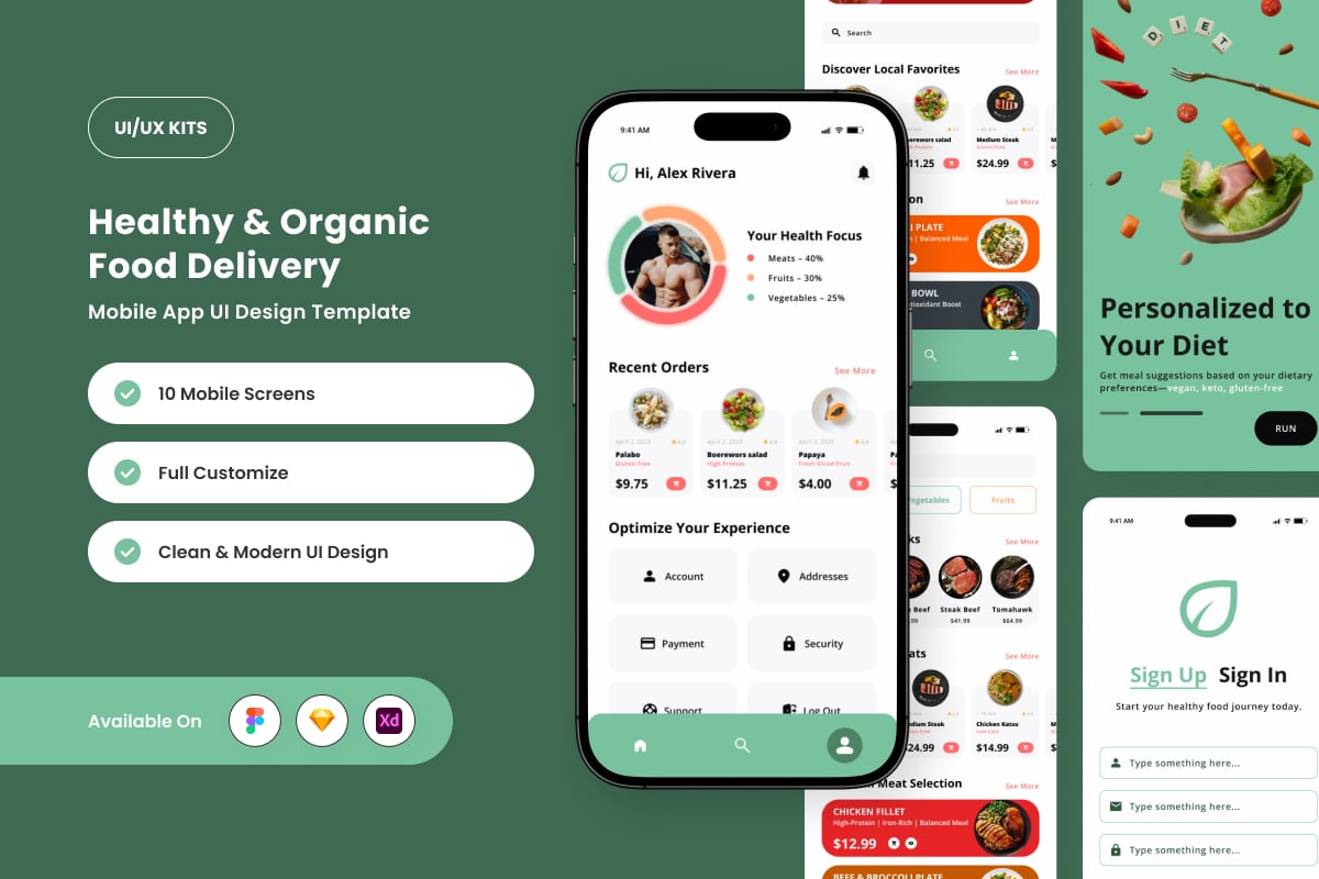 Speed meets sustainability with Fresh Fast — a healthy food delivery UI design created for convenience without compromising values. Perfect for apps targeting active users, wellness routines, and mindful eating platforms.