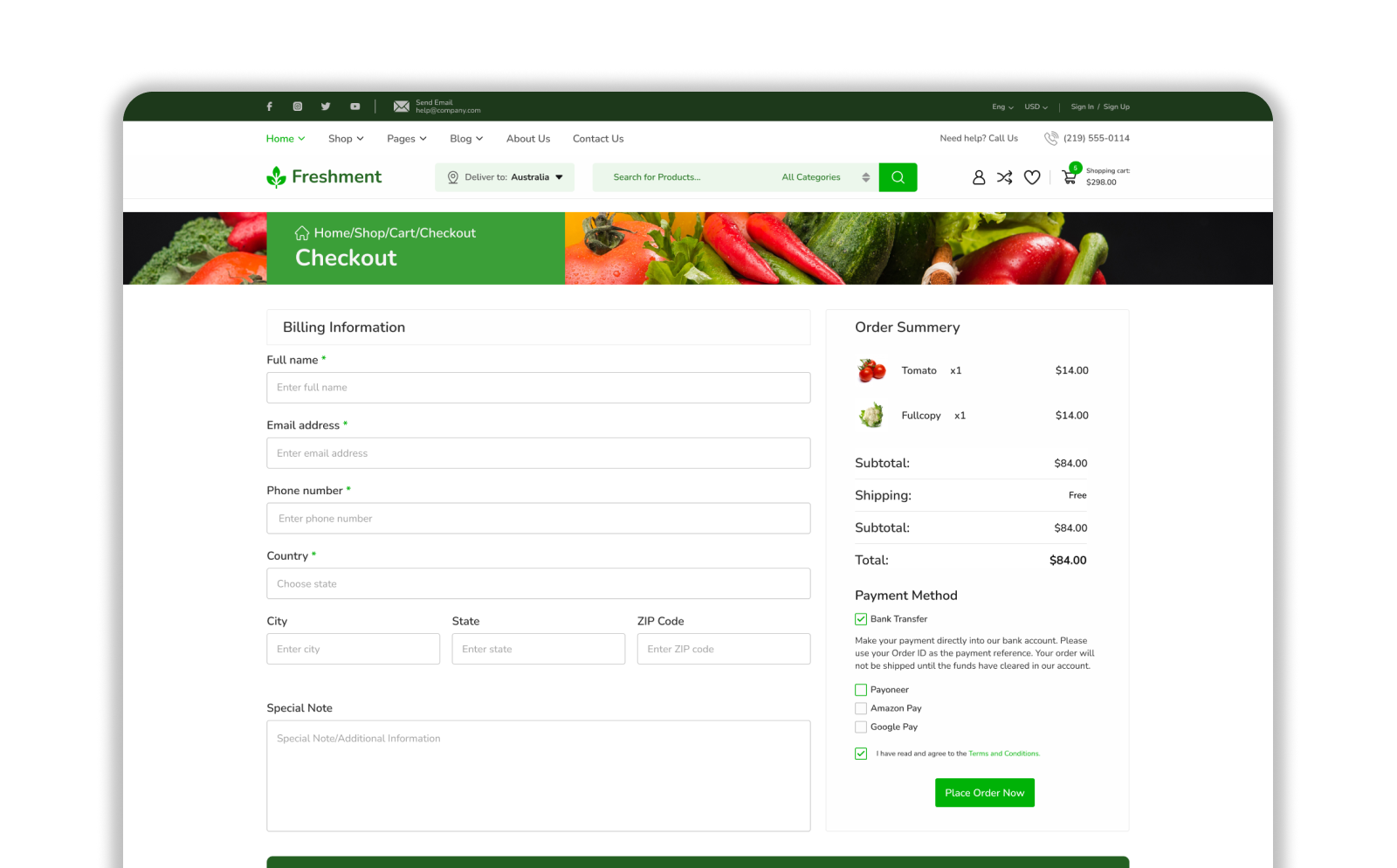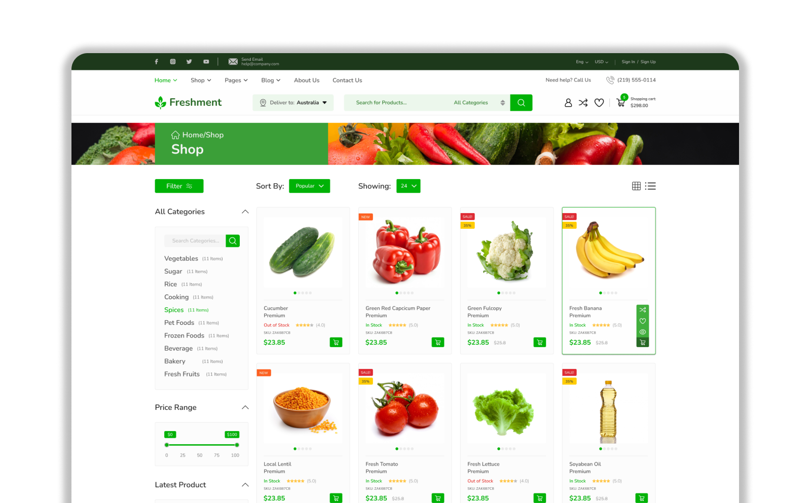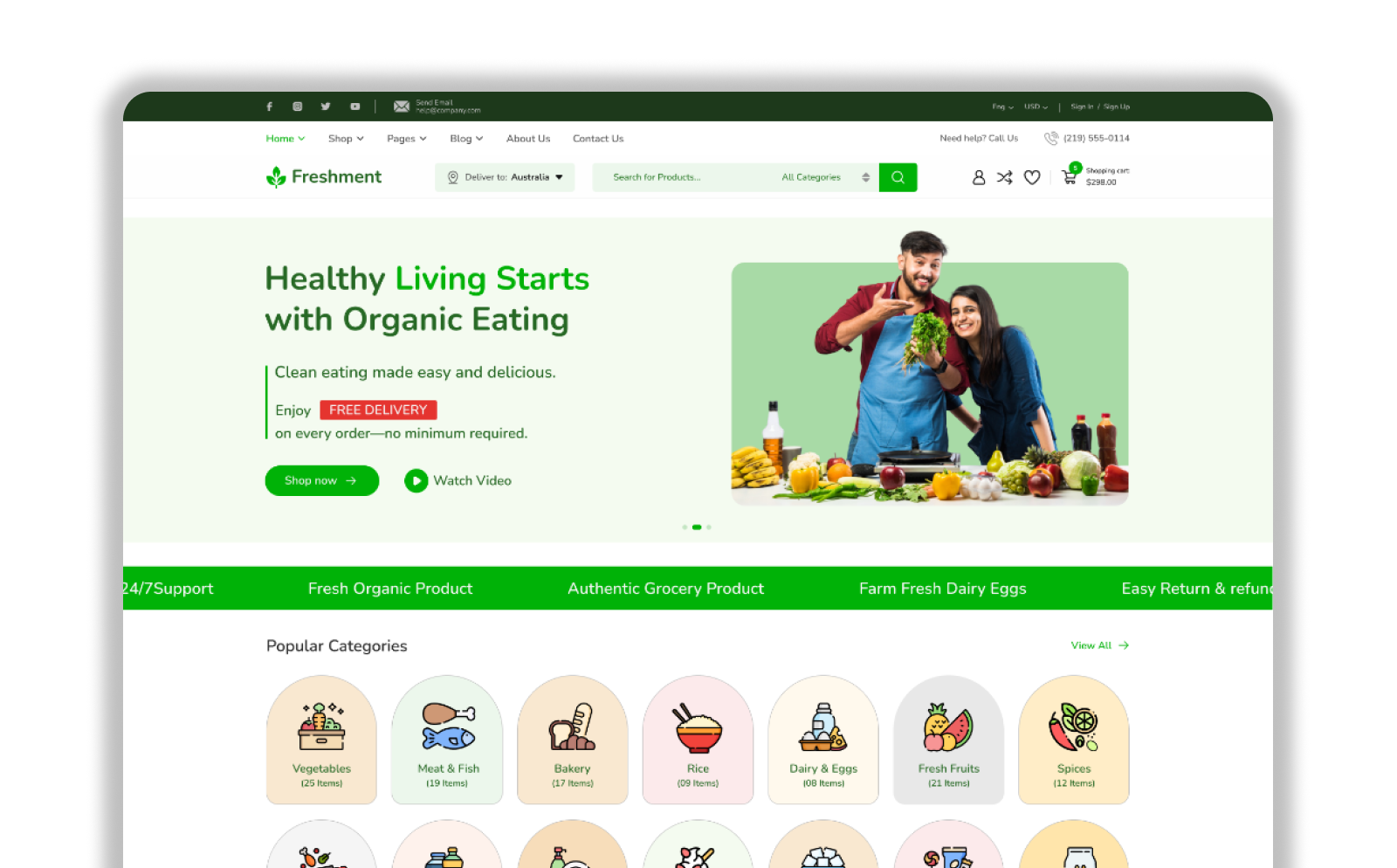 Freshment – Modern E-Commerce Grocery Theme Figma Template