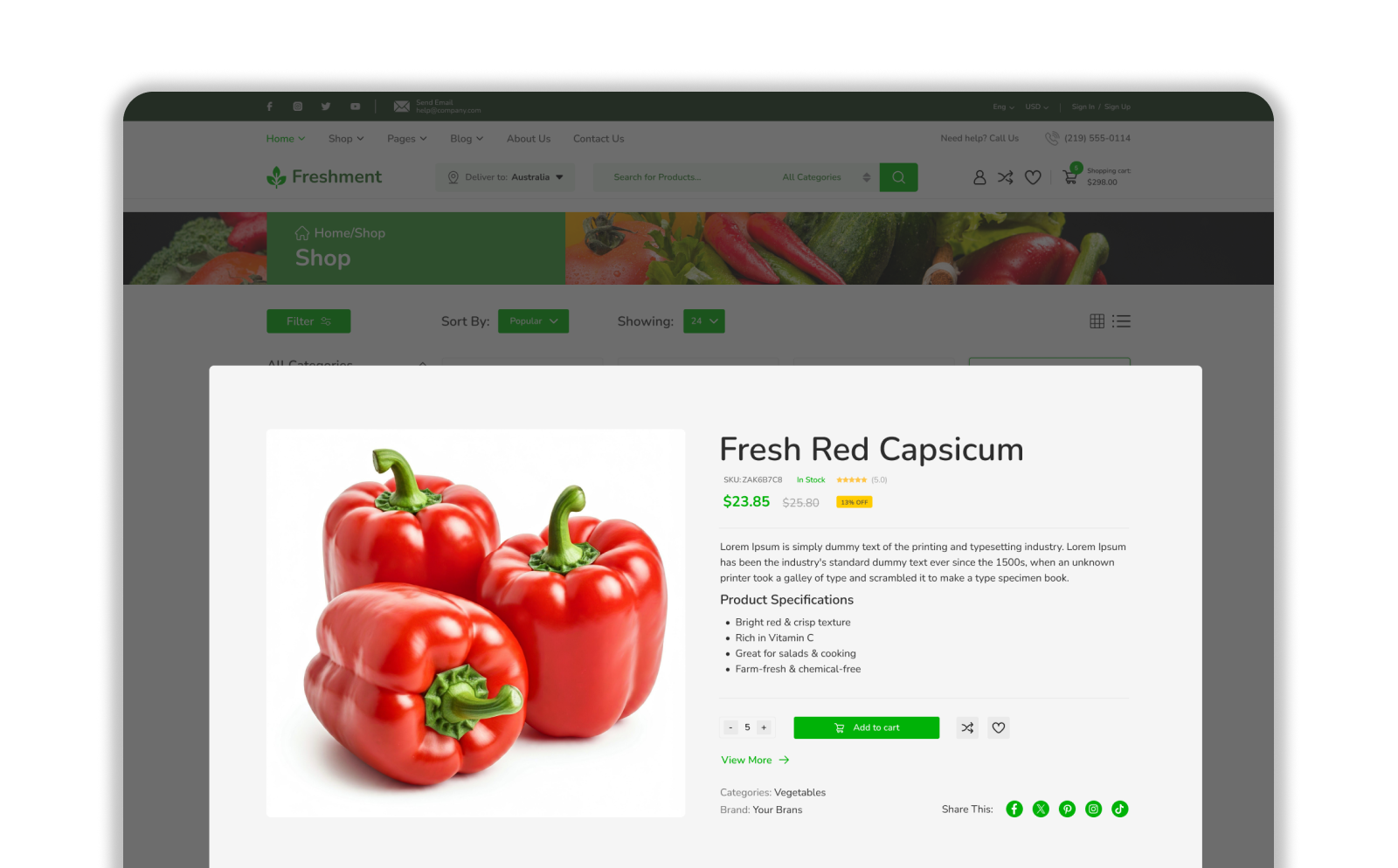 Freshment - Modern E-Commerce Grocery Theme Figma Template UI Element