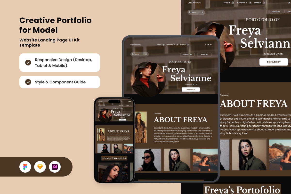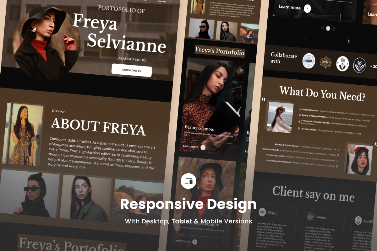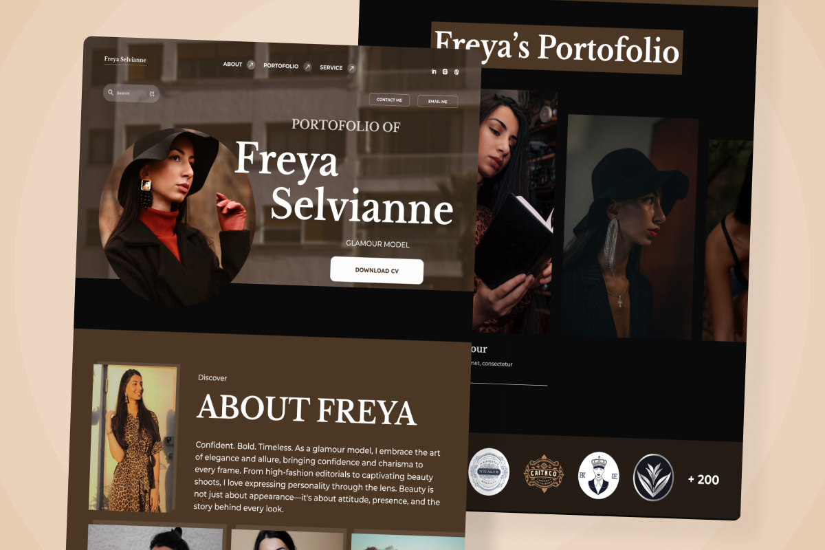 Freya Selvianne - Fashion Model Portfolio Landing Page UI Element