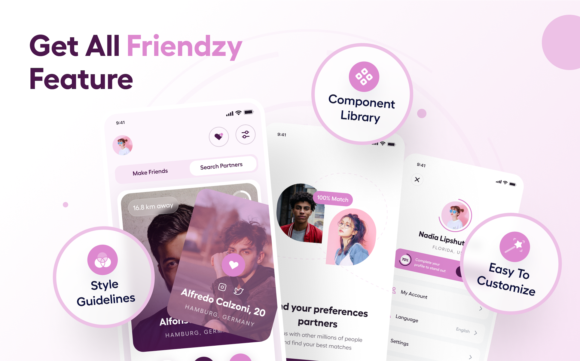 Friendzy - The Ultimate Dating App UI Kit UI Element