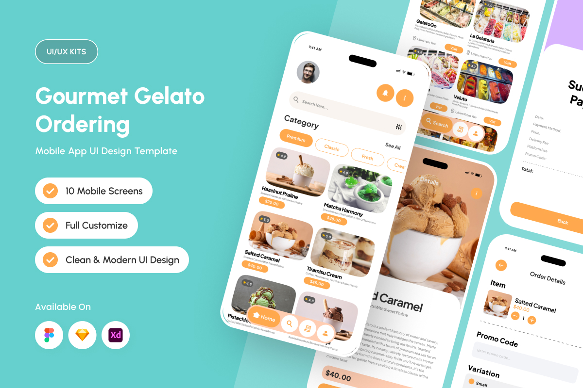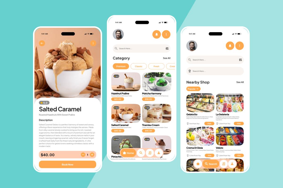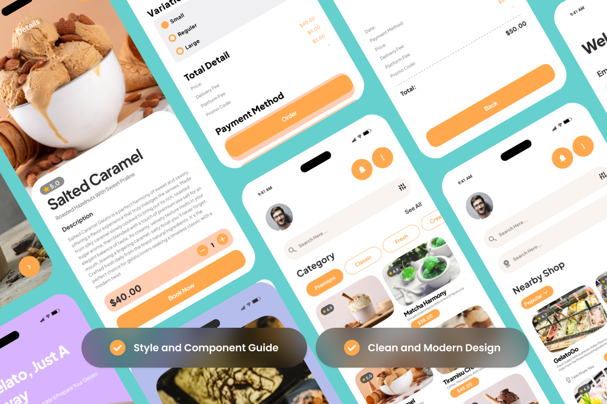 Gelateria - Gourmet Gelato Ordering App Design Template UI Element