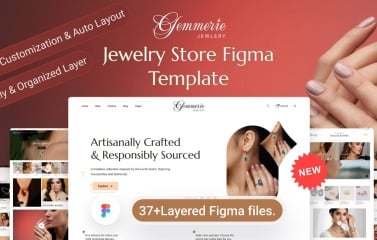 Gemmerie is a premium Figma template designed specifically for jewelry and luxury eCommerce stores. It features an elegant, modern aesthetic with a clean layout that is easy to customize for any high-end brand.
