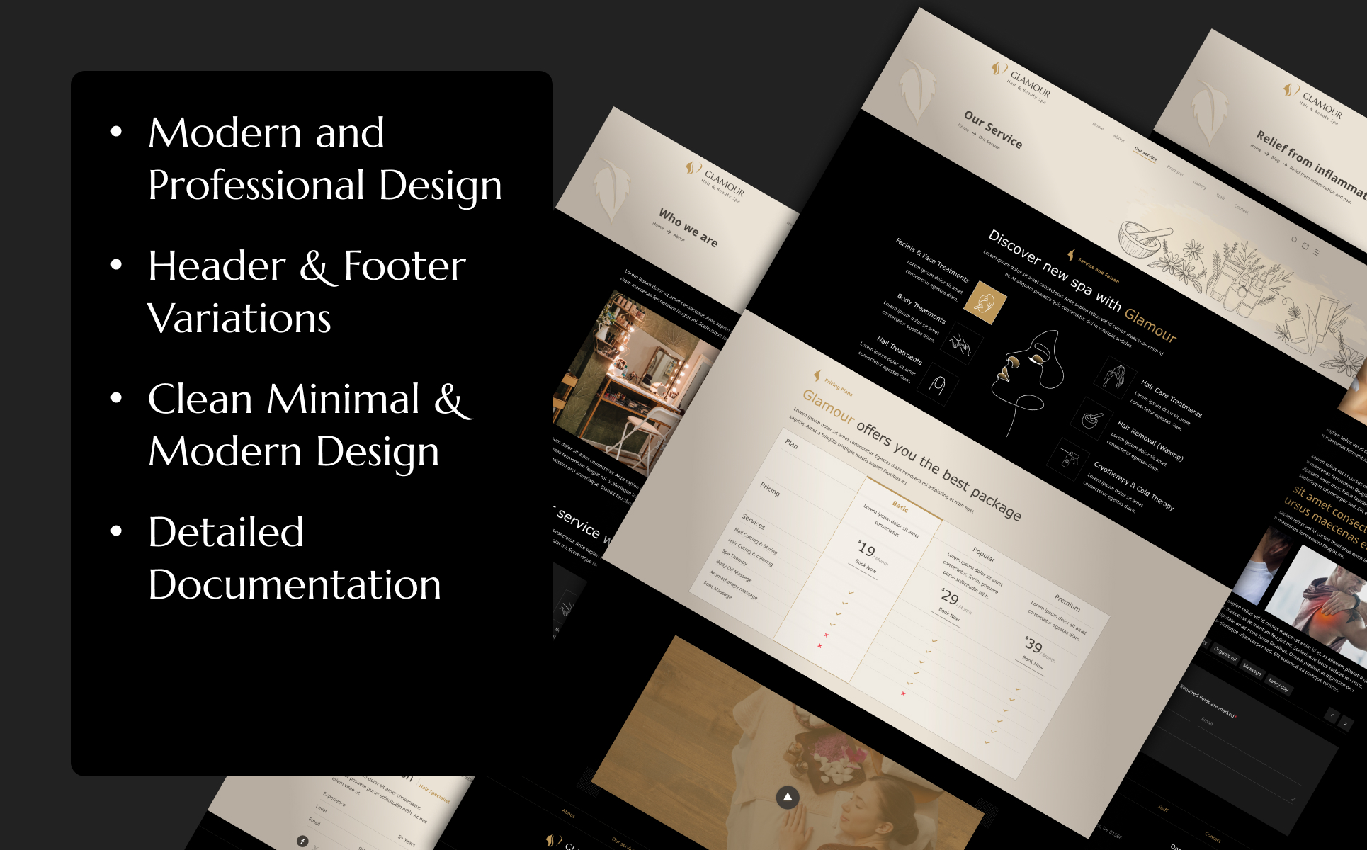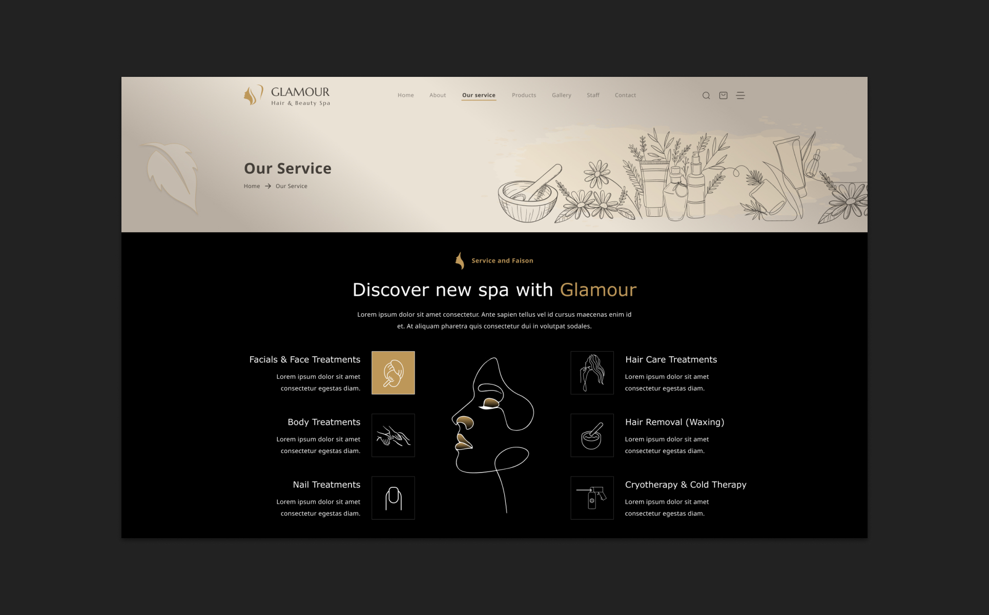 Glamour - Hair & Beauty Spa is a figma template that is easy to customize, responsive, and user-friendly. It is designed with modern and elegant aesthetics, as well as best practices for web design and development. It is a perfect solution for creating a beautiful and functional website for your hair and beauty spa business.