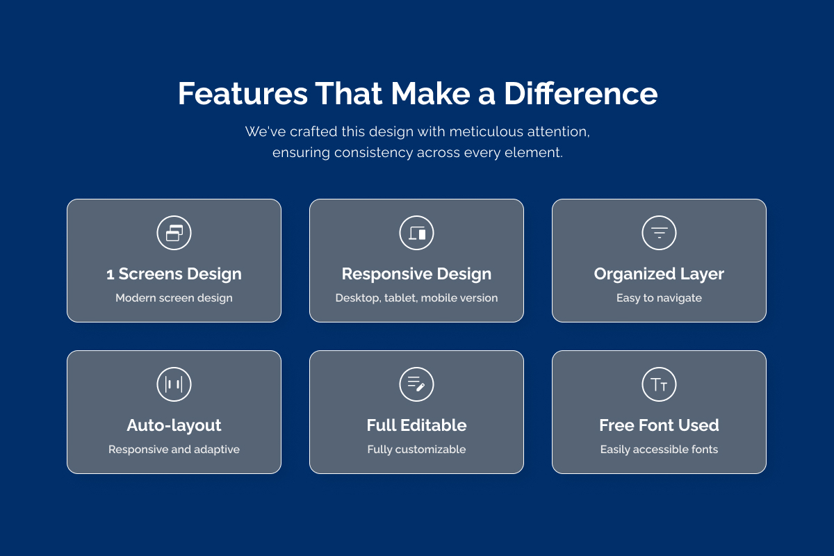 This premium template makes customization simple while maintaining a consistent visual hierarchy. Featuring modular components, clean Organized Layers, and the Auto-Layout feature, ATHURA ensures a rapid and easy design process. The design is fully Responsive and Adaptive (for Desktop, Tablet, and Mobile), guaranteeing optimal readability and a developer-friendly workflow to accelerate your website launch.