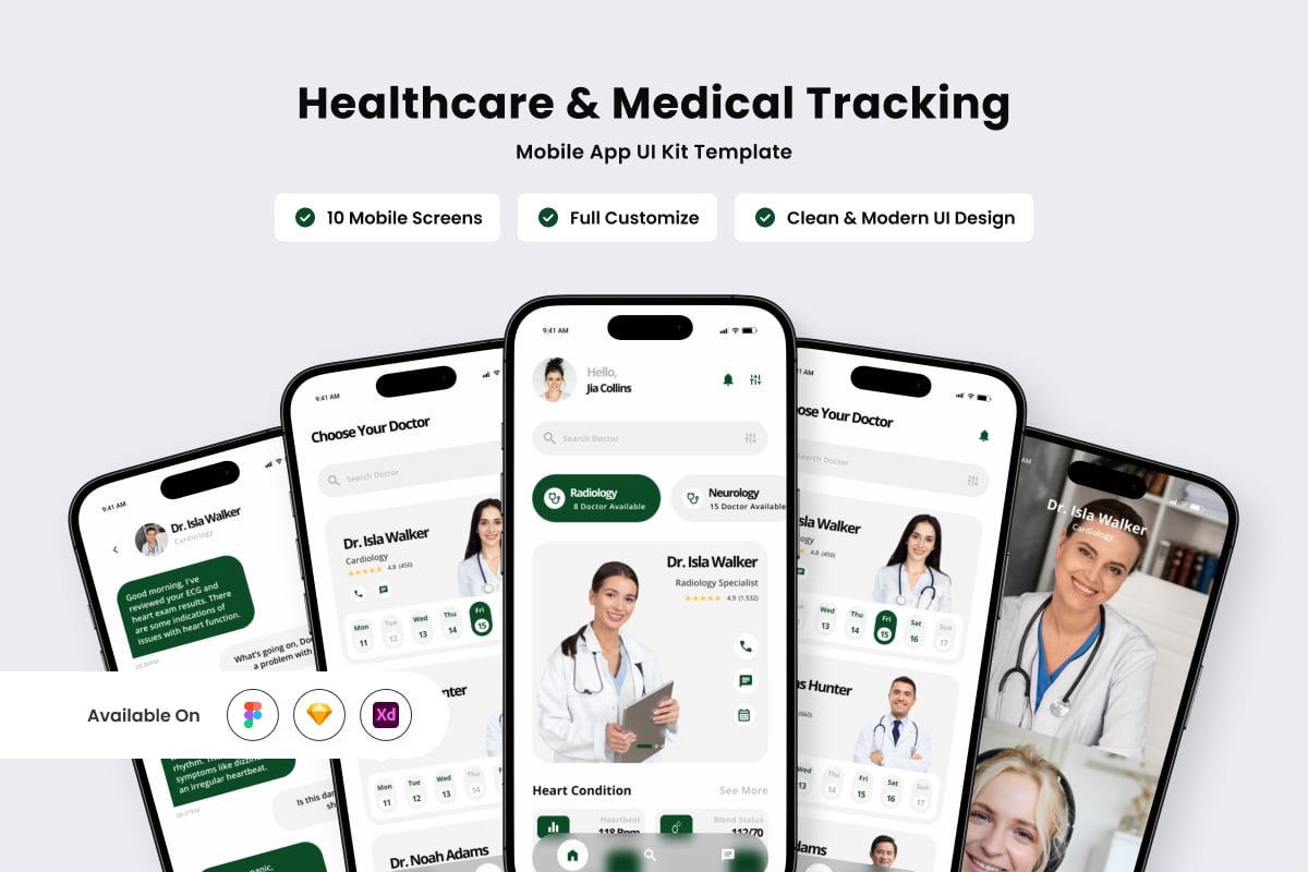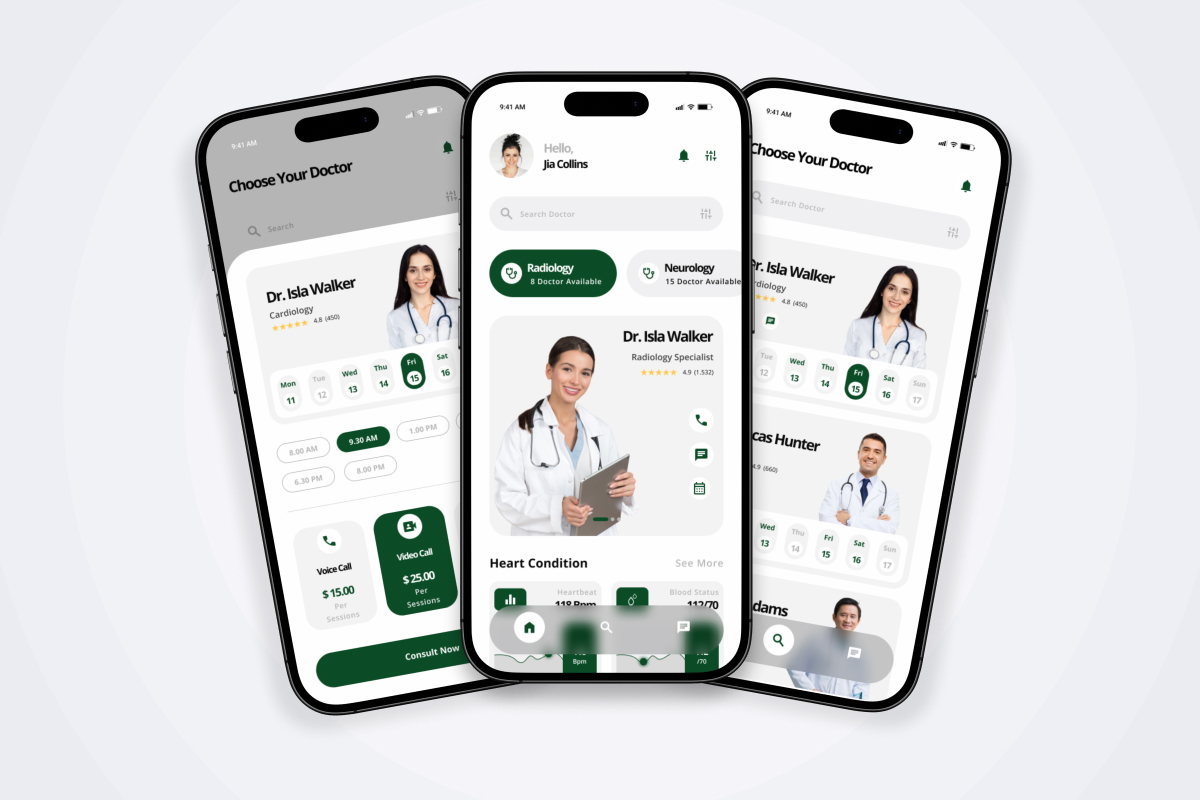 A sleek and professional app design built for healthcare management and medical tracking. With an elegant interface, personalized health dashboards, and appointment scheduling features, this template ensures a smooth and engaging user experience, making it the perfect choice for digital health solutions.**Highlights:**