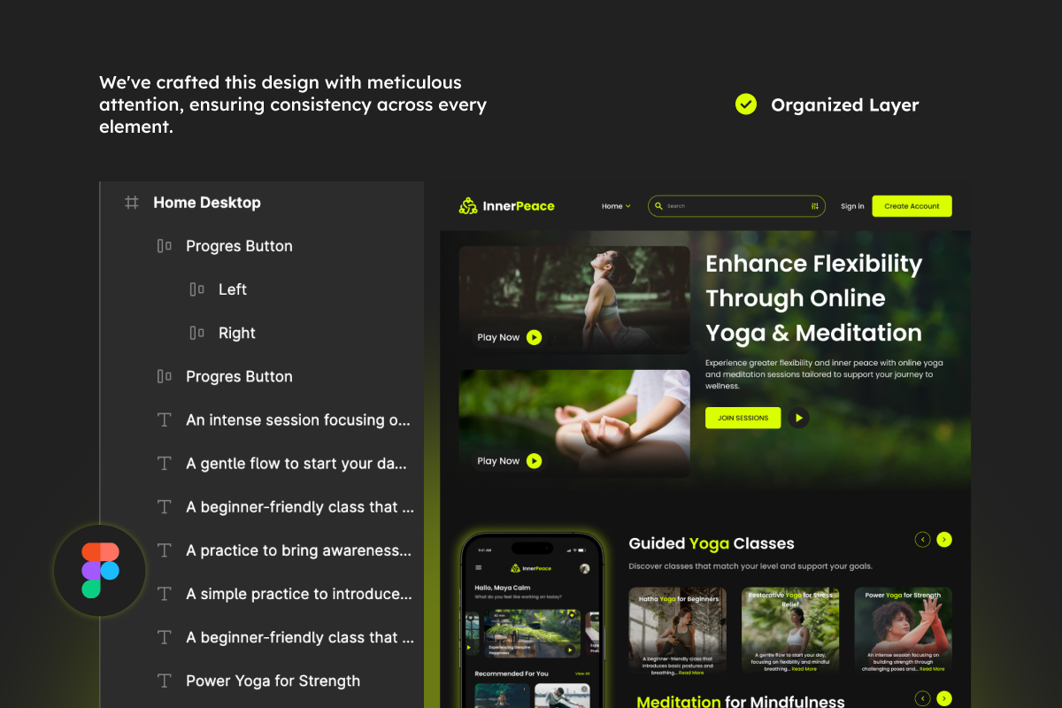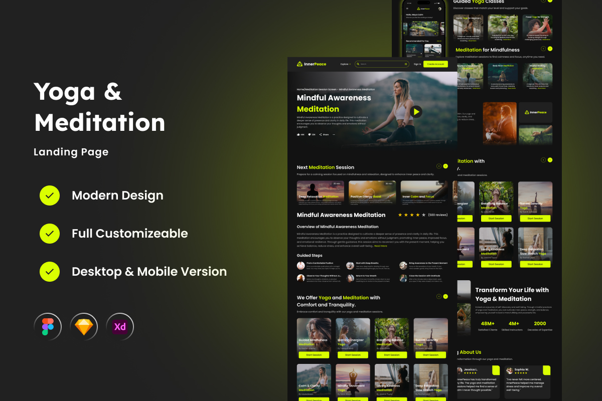 InnerPeace - Yoga & Meditation Landing Page UI Element