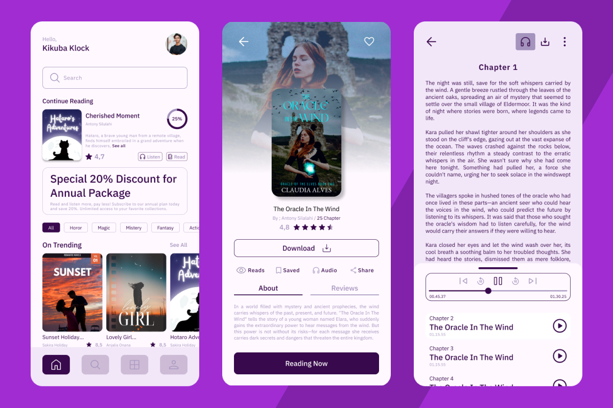 Kitlens is a sleek and intuitive ebook mobile app design, perfect for avid readers. With its clean interface and customizable features, Kitlens offers a seamless reading experience, allowing users to dive into their favorite books with ease.