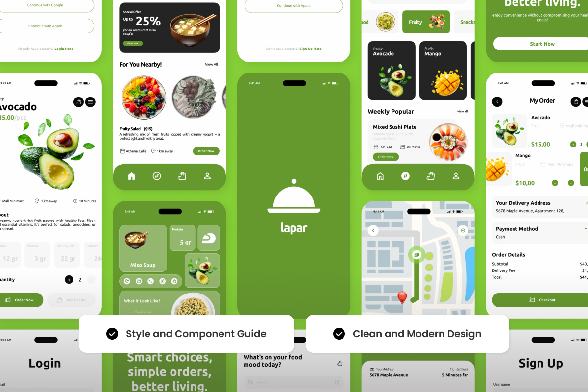 Lapar – Healthy Meal Order App Design Template UI Element