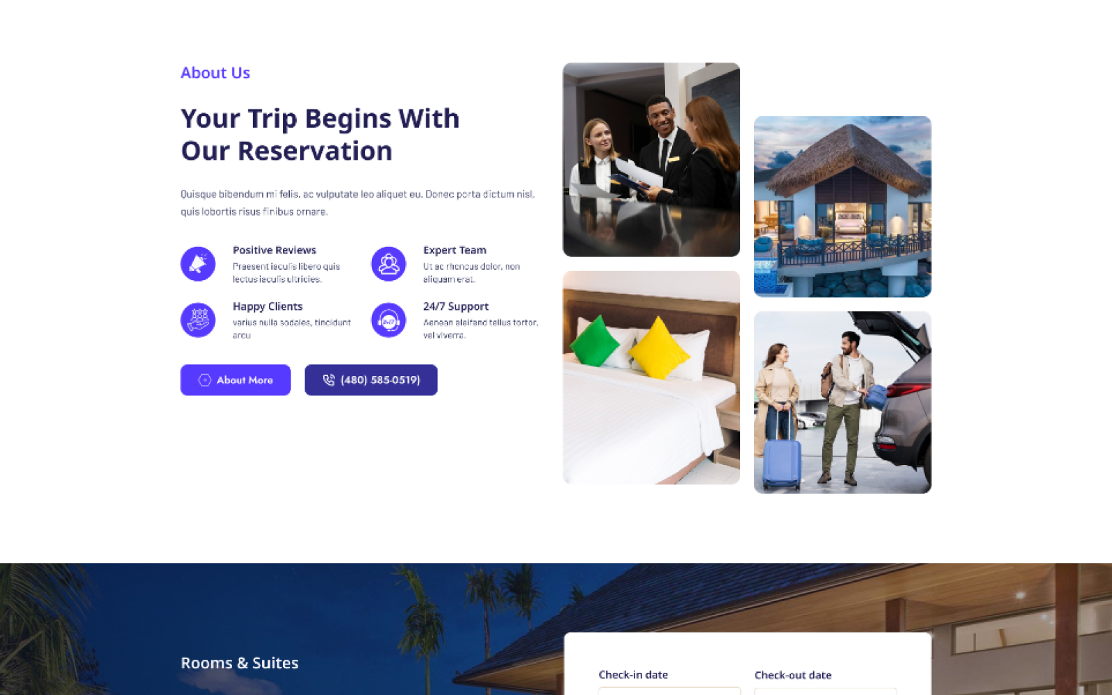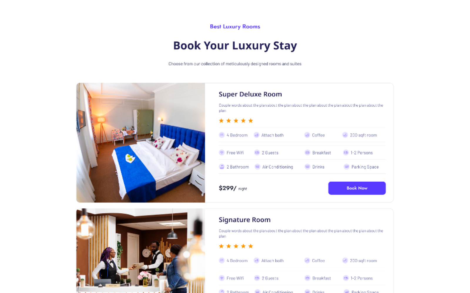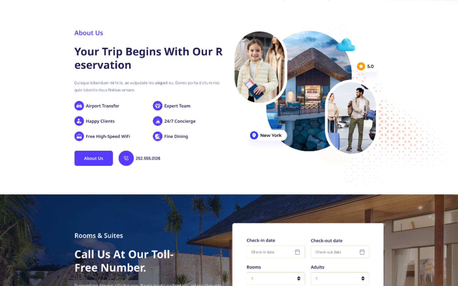 Hotel Booking is a clean, modern, creative, and luxurious Figma template designed for hotels, travel, booking, and accommodation services. It's also ideal for hotel chains with multiple branches. This fully customizable template allows you to easily edit text, images, content, objects, and colors to suit your brand. With its sleek and user-friendly design, it offers a unique and engaging user experience that your visitors will love. Whether you're starting a new business or upgrading your current website, this template is the perfect solution to elevate your online presence and attract more guests.
