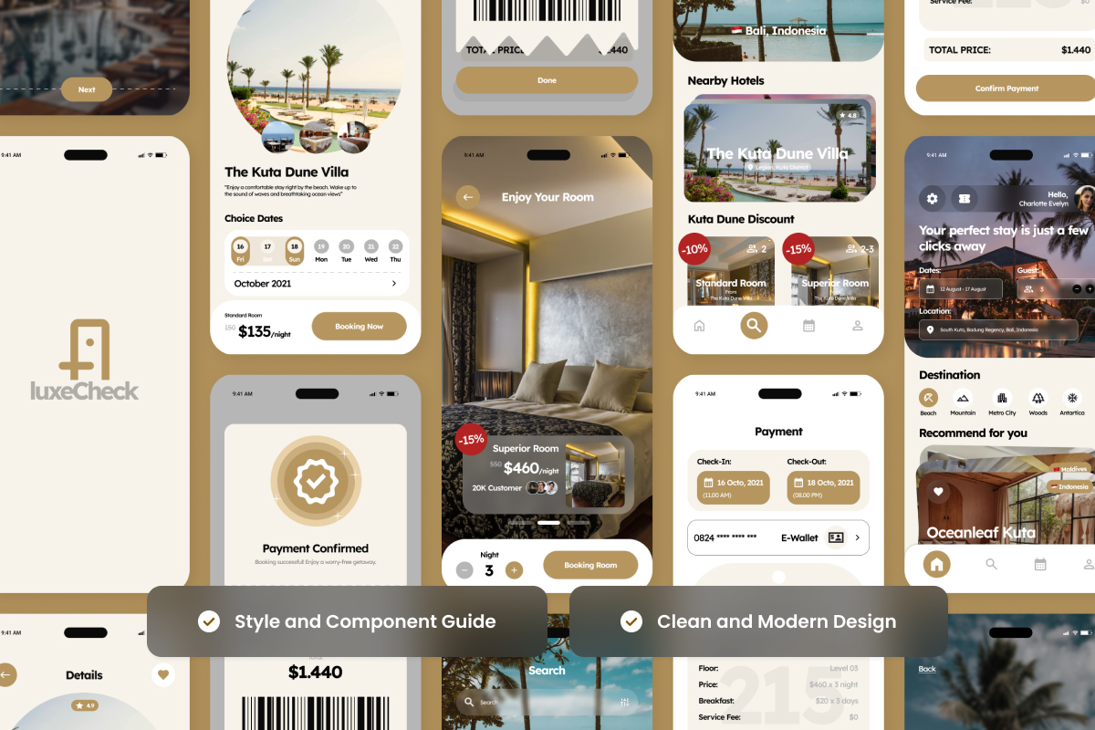 LuxeCheck – Hotel Booking App Design Template UI Element