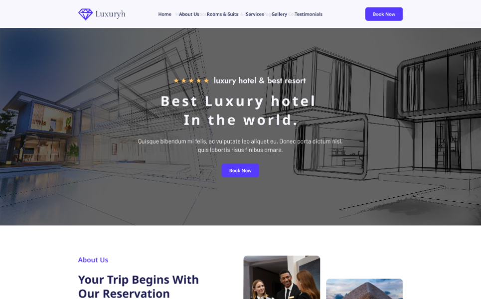 Luxuryh - Luxury & Hotel Booking Figma Landing Template