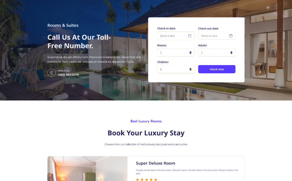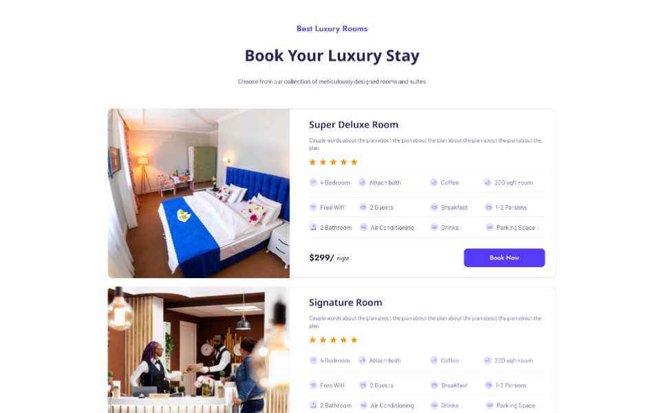 Luxuryh - Luxury & Hotel Booking Figma Landing Template UI Element