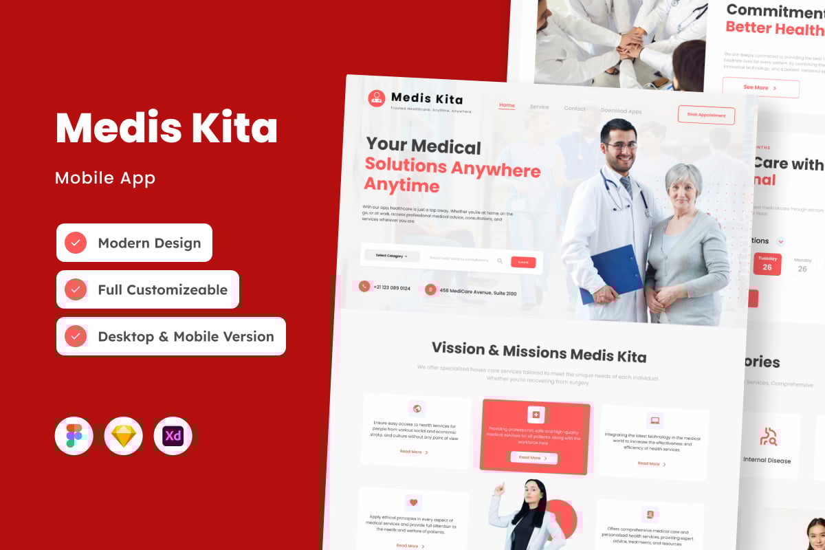Medis Kita Landing Page is tailored for multilingual healthcare services. Its clean design supports responsive layouts, booking systems, and customization. Suitable for clinics, hospitals, and health providers.