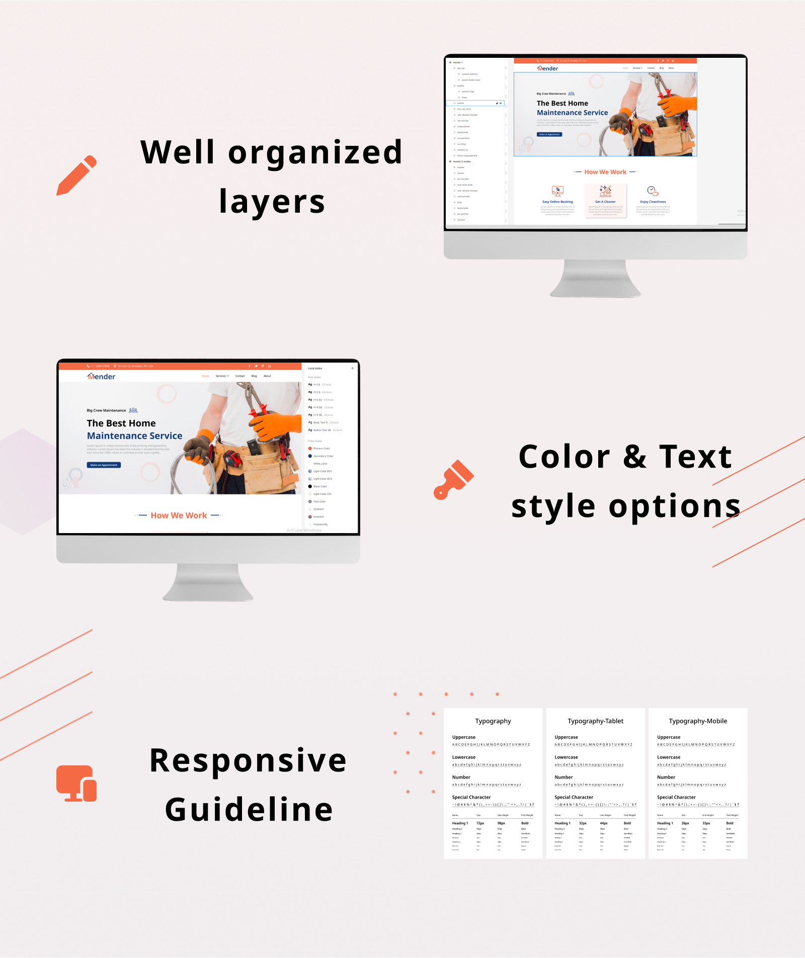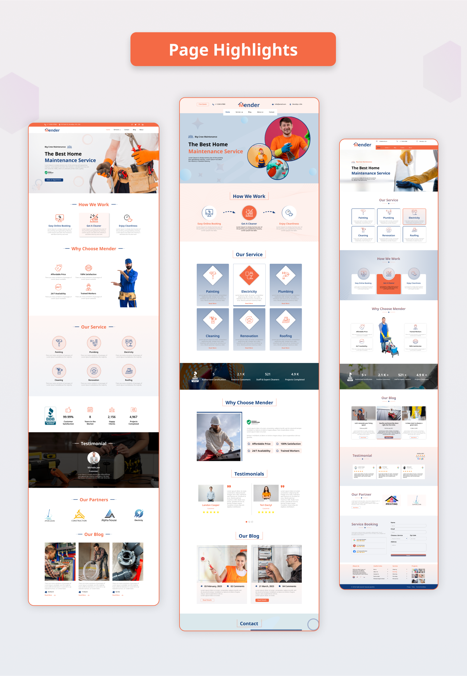 Introducing the Mender - Home Maintenance Service Landing Page Figma UI Kit, the ultimate solution for designing a professional and user-friendly landing page for your home maintenance service business.