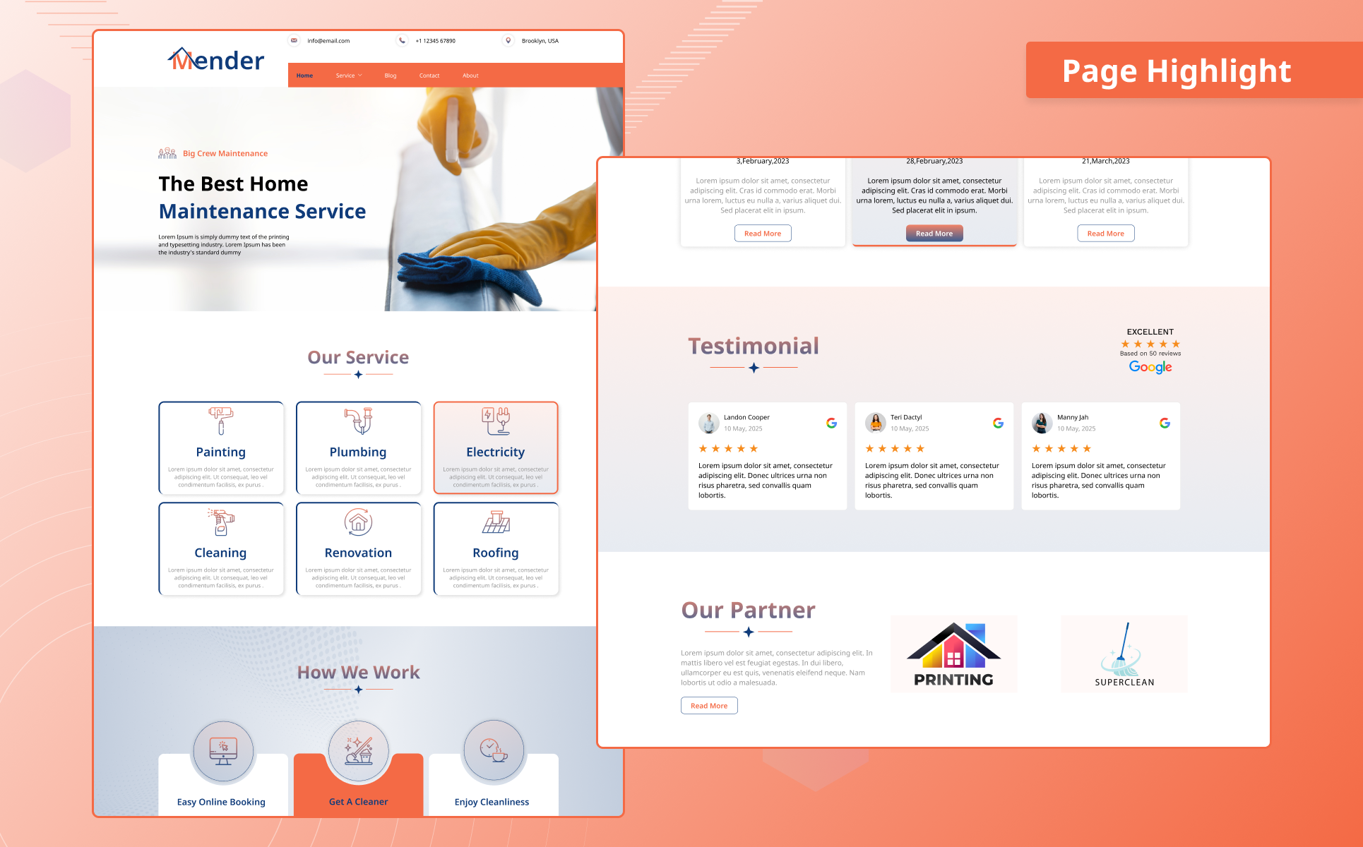 Introducing the Mender - Home Maintenance Service Landing Page Figma UI Kit, the ultimate solution for designing a professional and user-friendly landing page for your home maintenance service business.
