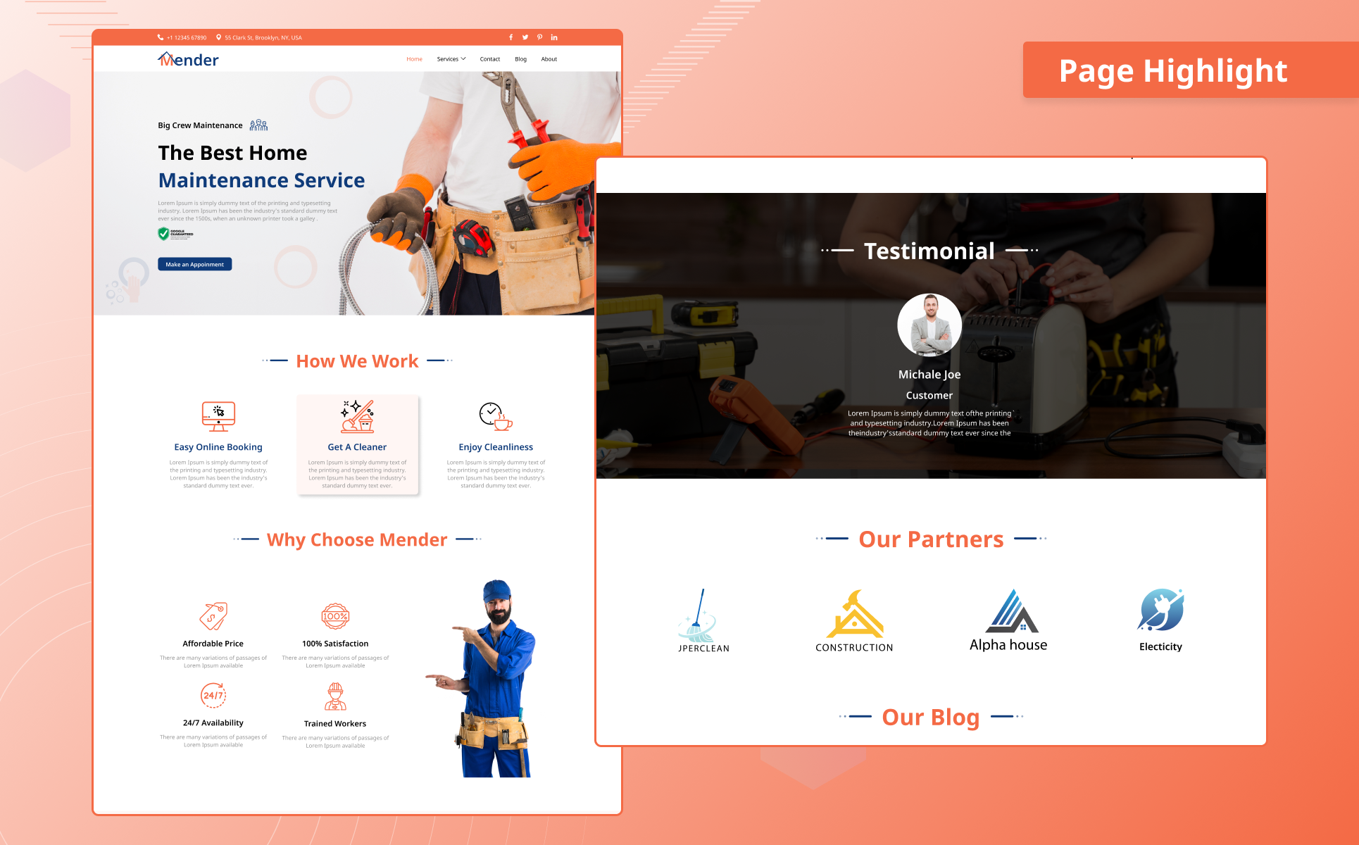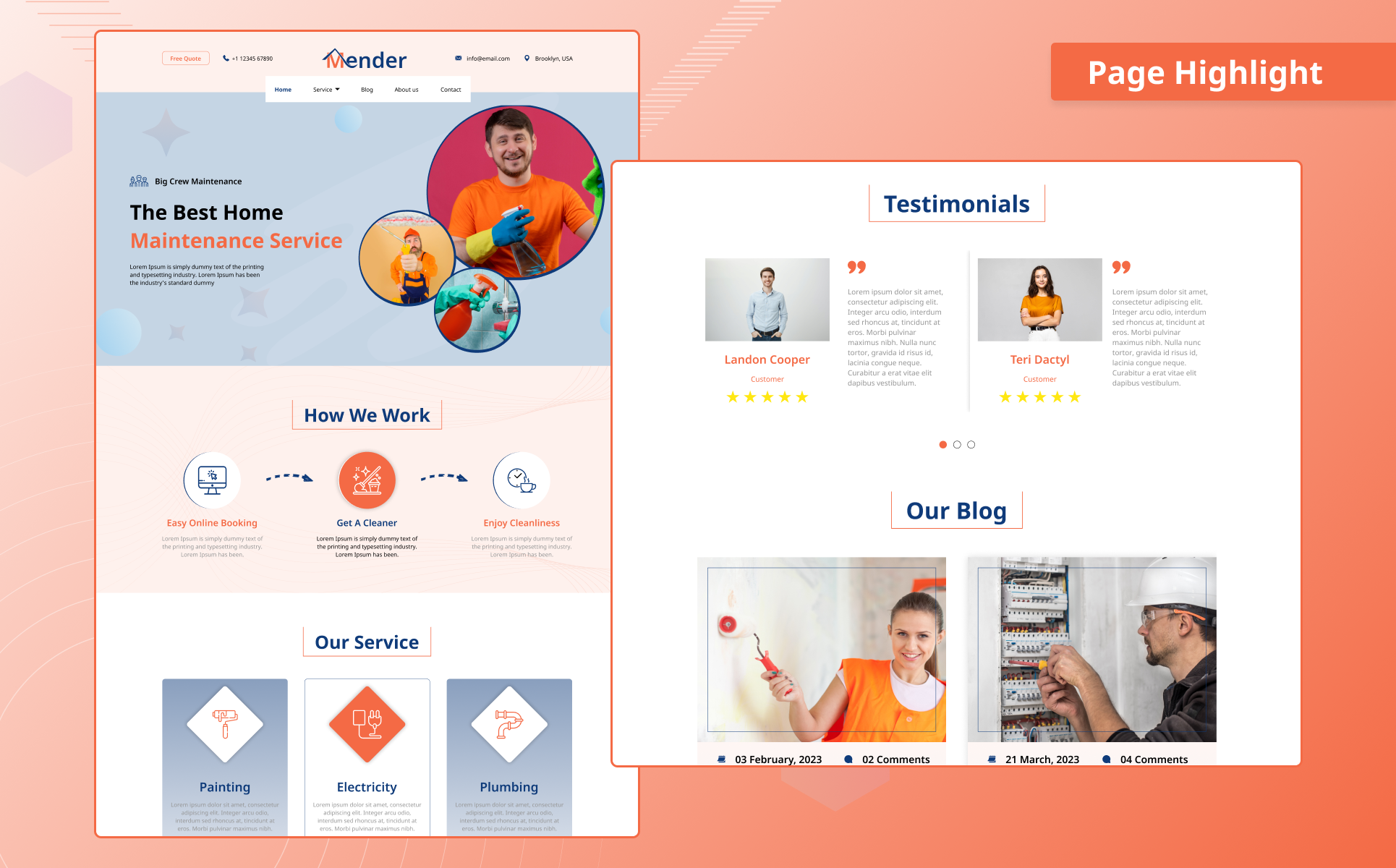 Mender - Home Maintenance Service Landing Page UI Kit UI Element