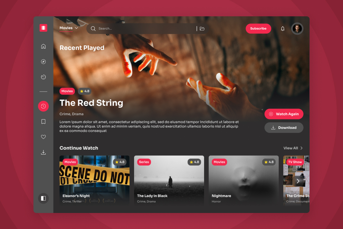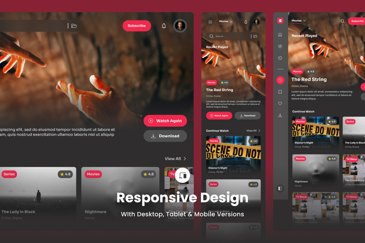 Create an immersive streaming experience with this sleek and modern movie dashboard UI kit. Designed with a dark neumorphism style and vibrant accent colors, this template helps you deliver a premium user interface for OTT, cinema, or film service platforms. Perfect for designers building next-gen entertainment dashboards with a cinematic aesthetic.