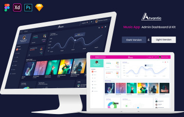 Atvantic - Music App Admin Dashboard UI Kit PSD, Sketch, Adobe XD and Figma: