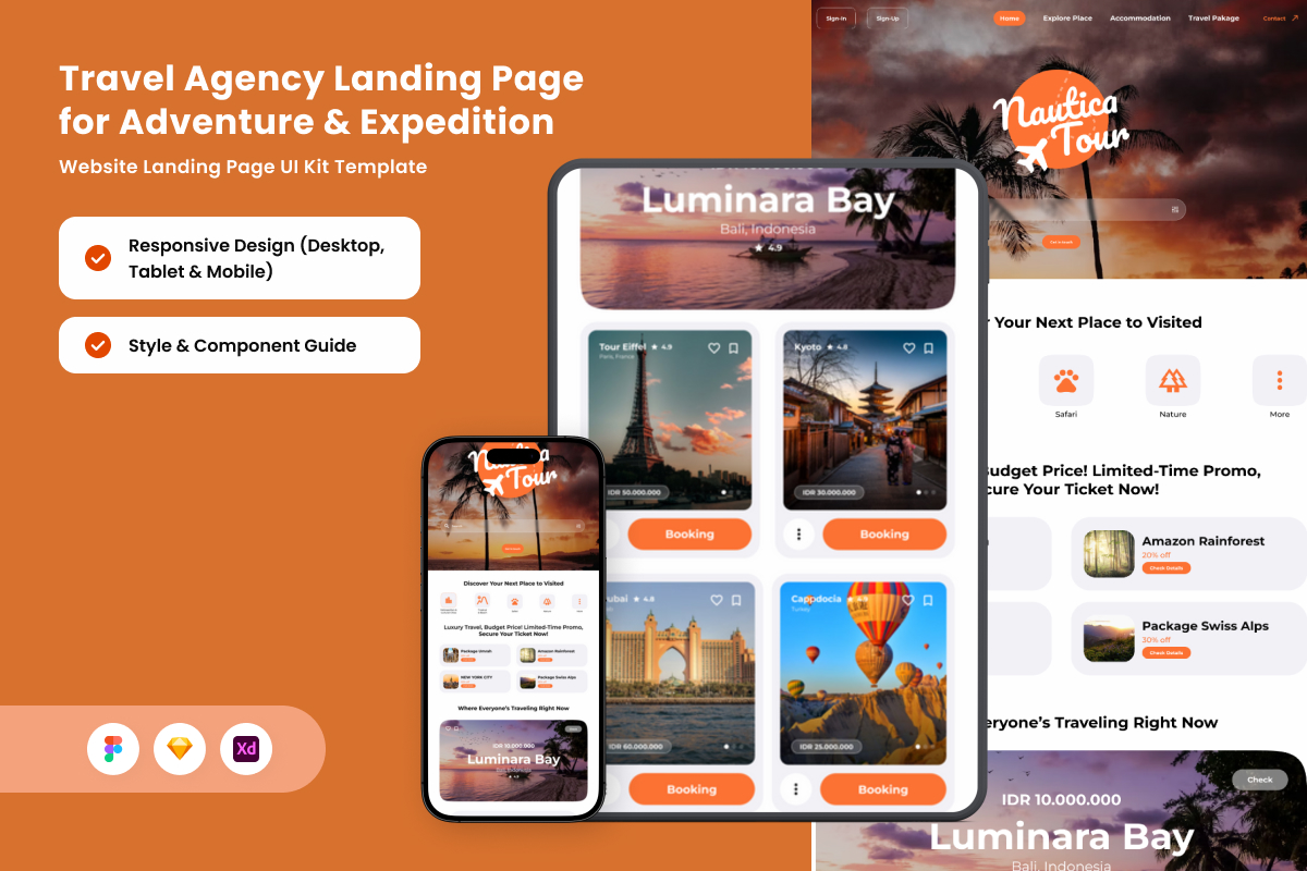 Nautica Tour - Travel Adventure Landing Page UI Element
