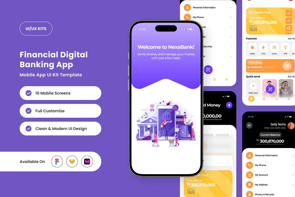 NexaBank combines a sleek, modern aesthetic with user-friendly functionality, making it an excellent choice for digital banking applications. Designed with minimalism in mind, this UI kit prioritizes ease of use, quick navigation, and a clutter-free experience. The well-organized components help streamline financial processes, providing a seamless and engaging experience for users. Perfect for fintech startups, mobile banks, and personal finance apps looking to establish a strong brand identity.