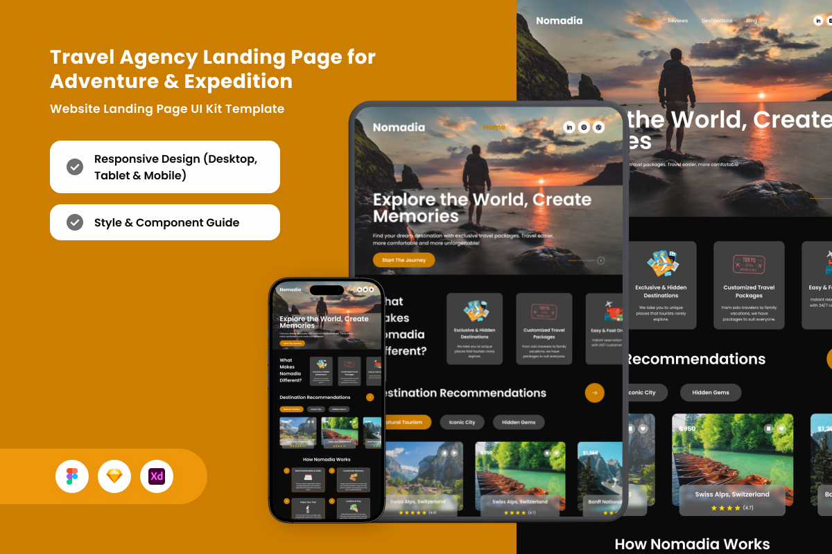 Nomadia - Outdoor Adventure Travel Landing Page UI Element