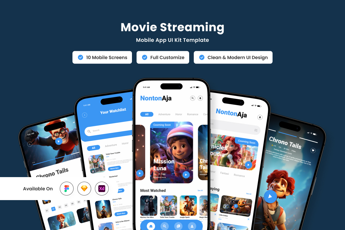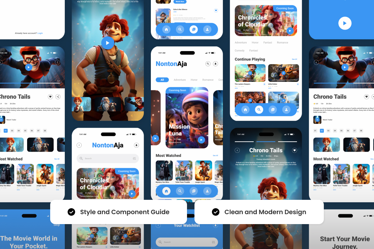 NontonAja – Movie Streaming Mobile App UI Design Template UI Element
