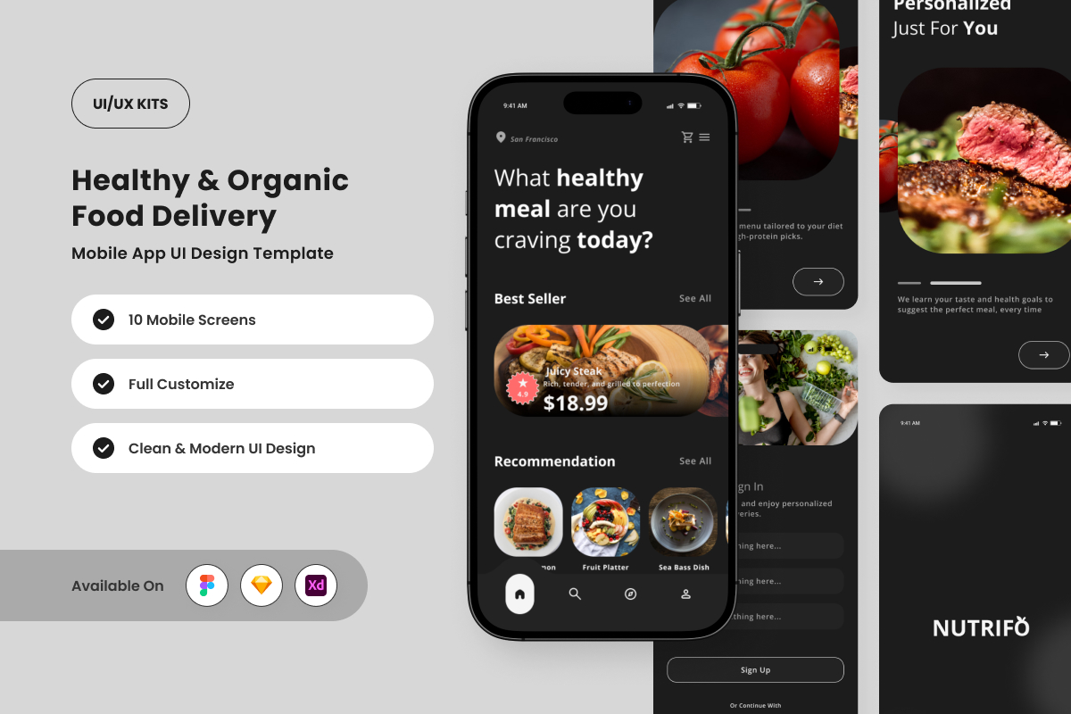 Nutrifo – Healthy Food Delivery App Design Template UI Element
