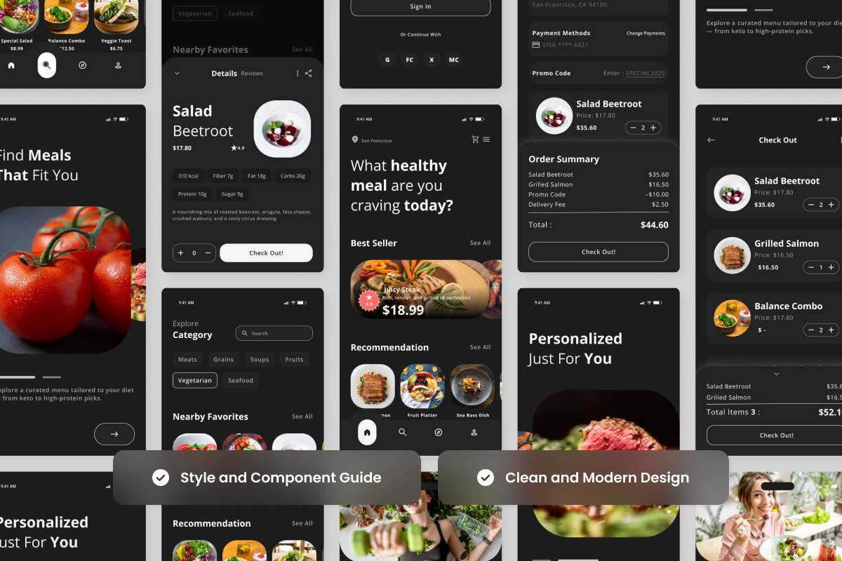 Build an impactful food delivery platform with NUTRIFO. Designed with glassmorphism and clean typography, this UI kit fits brands that prioritize both visual sophistication and functional clarity in promoting nutritious eating habits.