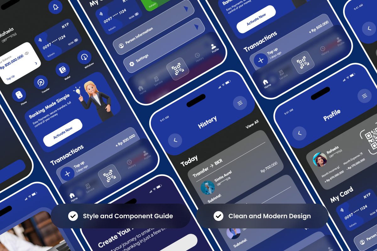 Nyimpen is a user-friendly mobile wallet kit that focuses on savings, goal tracking and easy transfers, pairing soft neutral tones with clear flows for deposits, withdrawals and account summaries that help users manage money confidently.