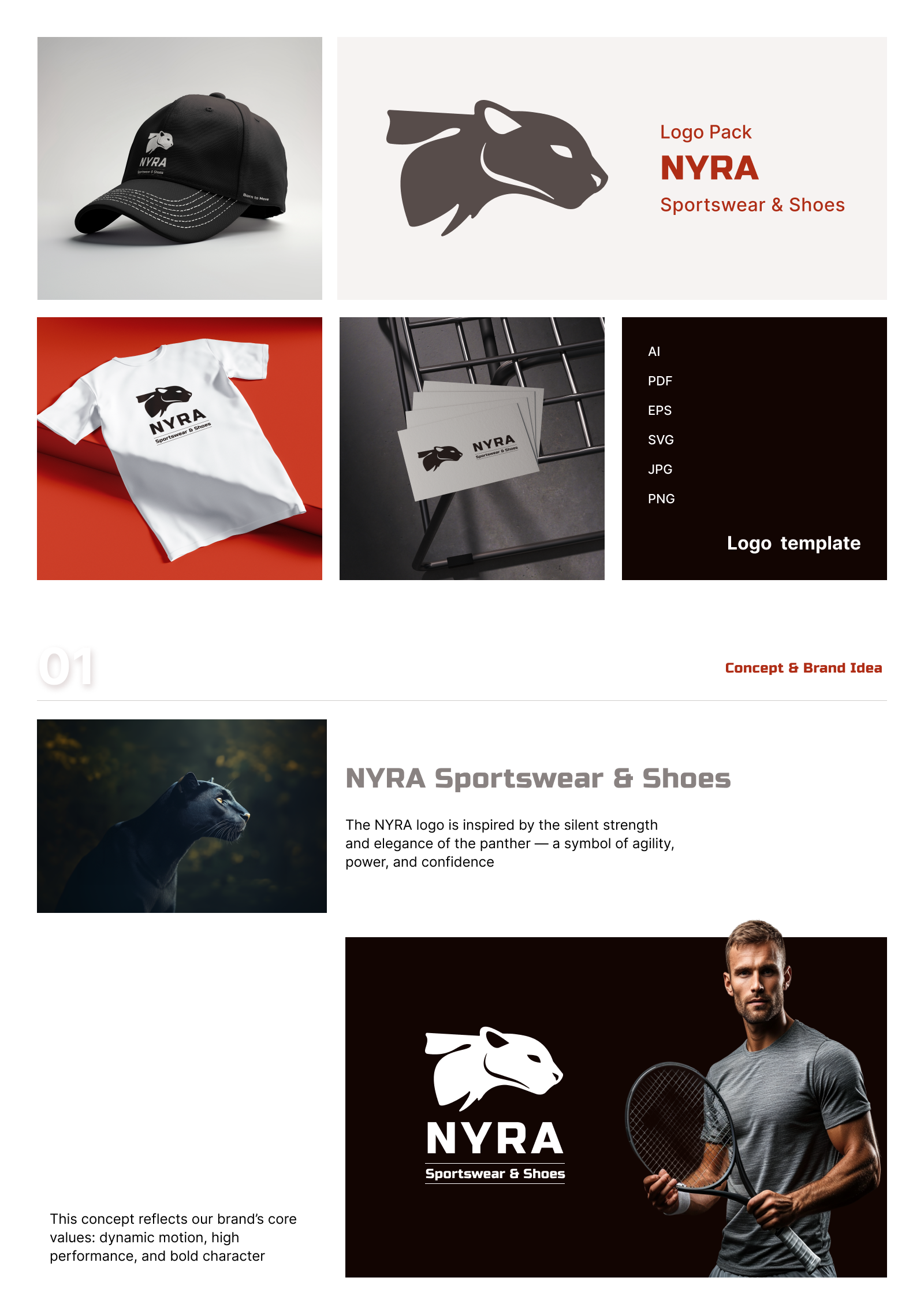 Designed for sportswear and footwear brands, it balances bold energy with sleek minimalism.