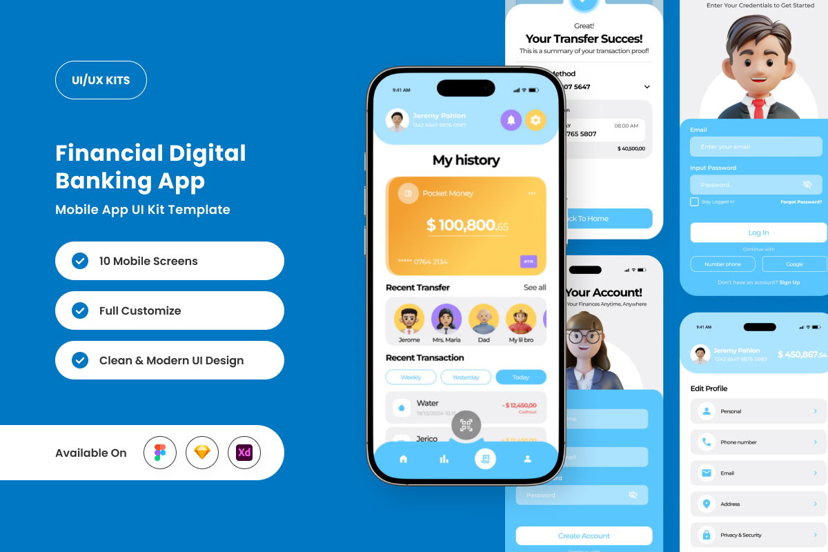 OkoaBank is built for modern financial applications, offering a high-end UI kit with a balance of minimalism and functionality. The smooth user flow, combined with a sophisticated design, ensures a seamless and secure banking experience. It includes essential screens for transactions, account management, and analytics, making it perfect for fintech apps, mobile banking, and investment platforms. Its sleek color gradients and smart UI components enhance usability and user engagement.