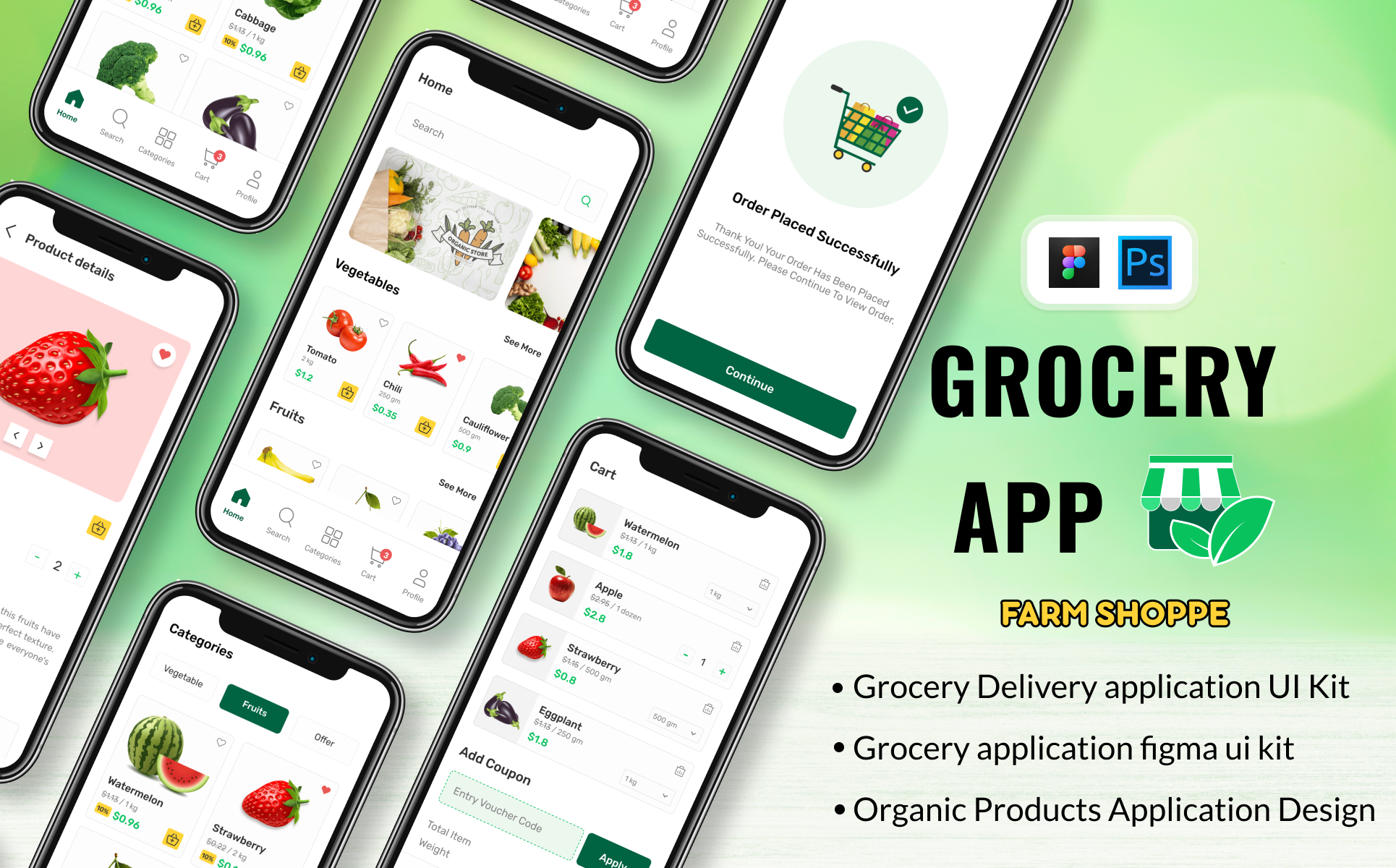 Online Food And Grocery Ui Kit | Mobile Application - Figma & PSD UI Element
