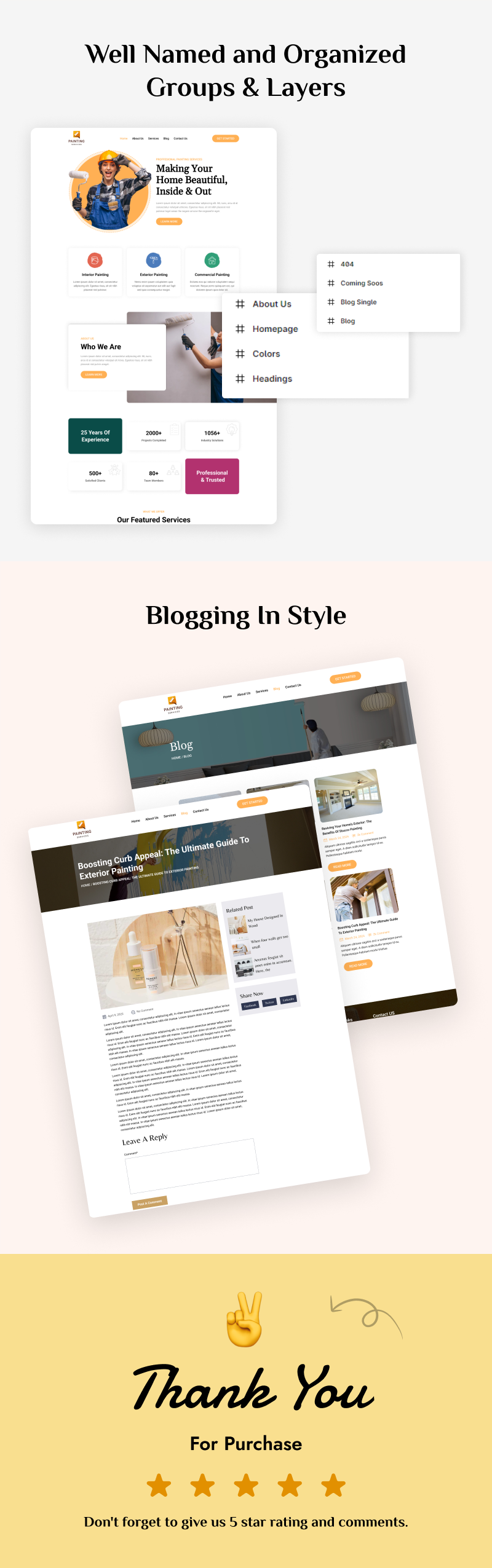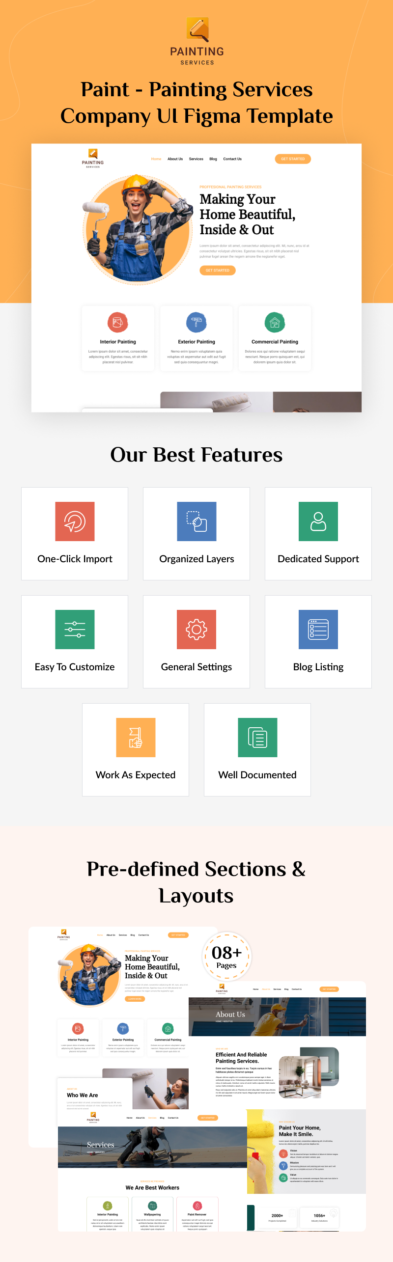 Paint - Painting Services Company Figma UI Template is a unique, creative, best-suited, readymade design for your painting agency. This design was made using the Figma tool. This website template design promotes your agency for interior paint, exterior paint, commercial paint, office painting, wallpapering, old paint removal services, etc.