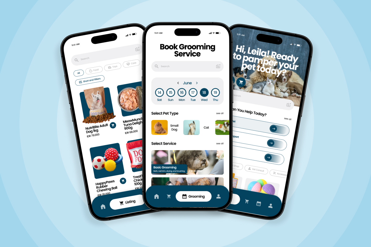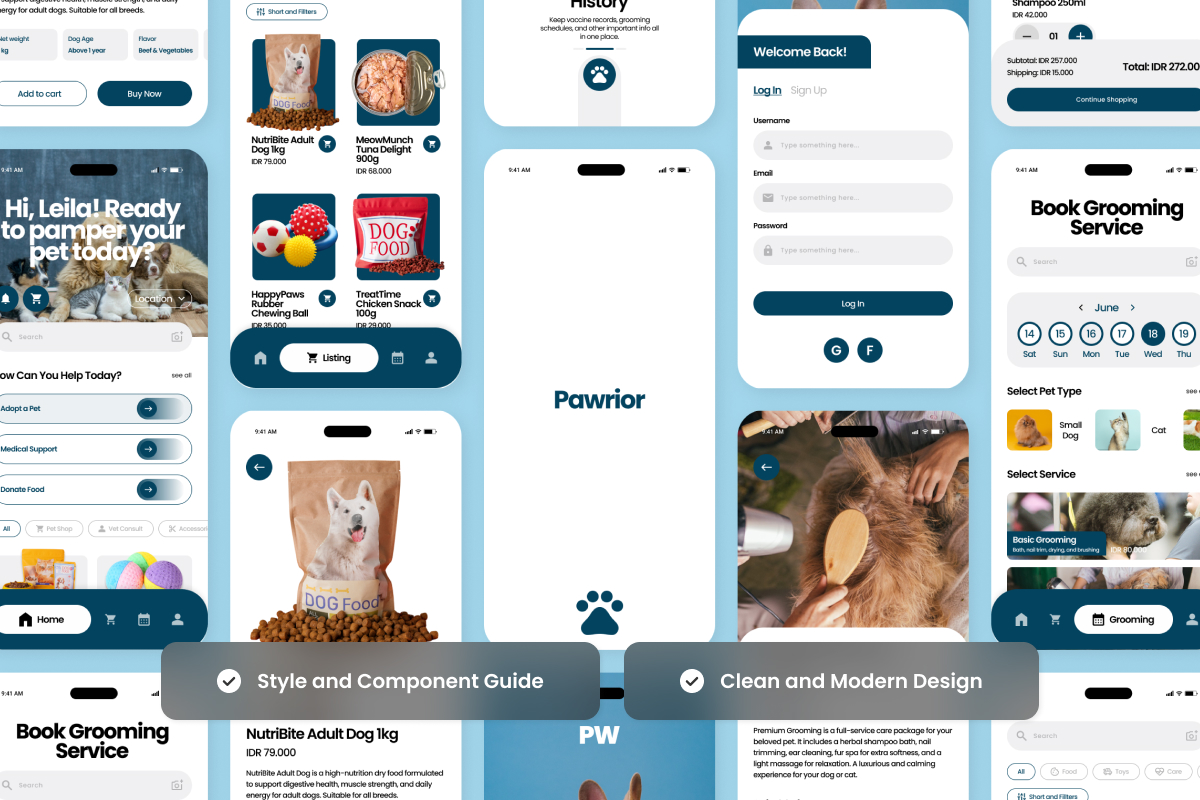 Pawrior is a sleek mobile app UI for pet lovers. Ideal for building vet booking apps, grooming schedulers, or pet stores, this kit offers soft curves, adorable icons, and airy layout optimized for mobile use.