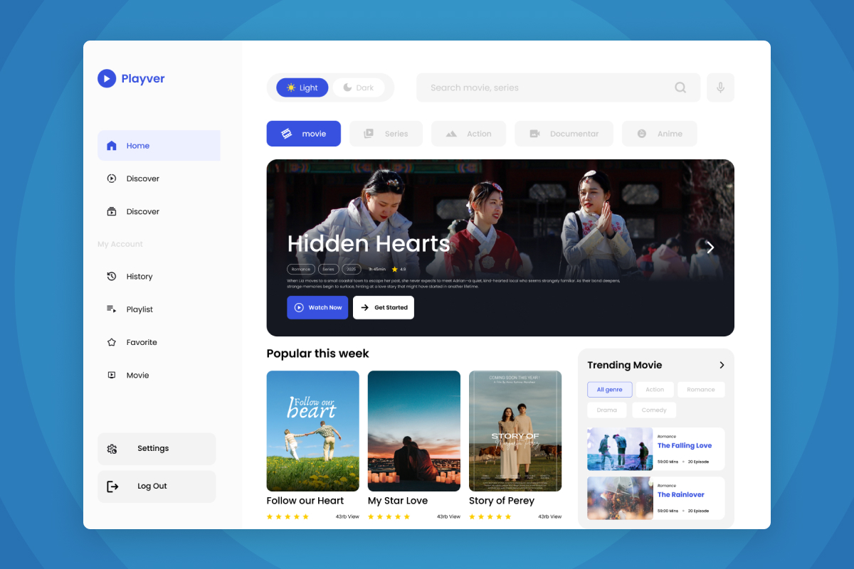 Playver - Movie Streaming Dashboard UI Design Template UI Element