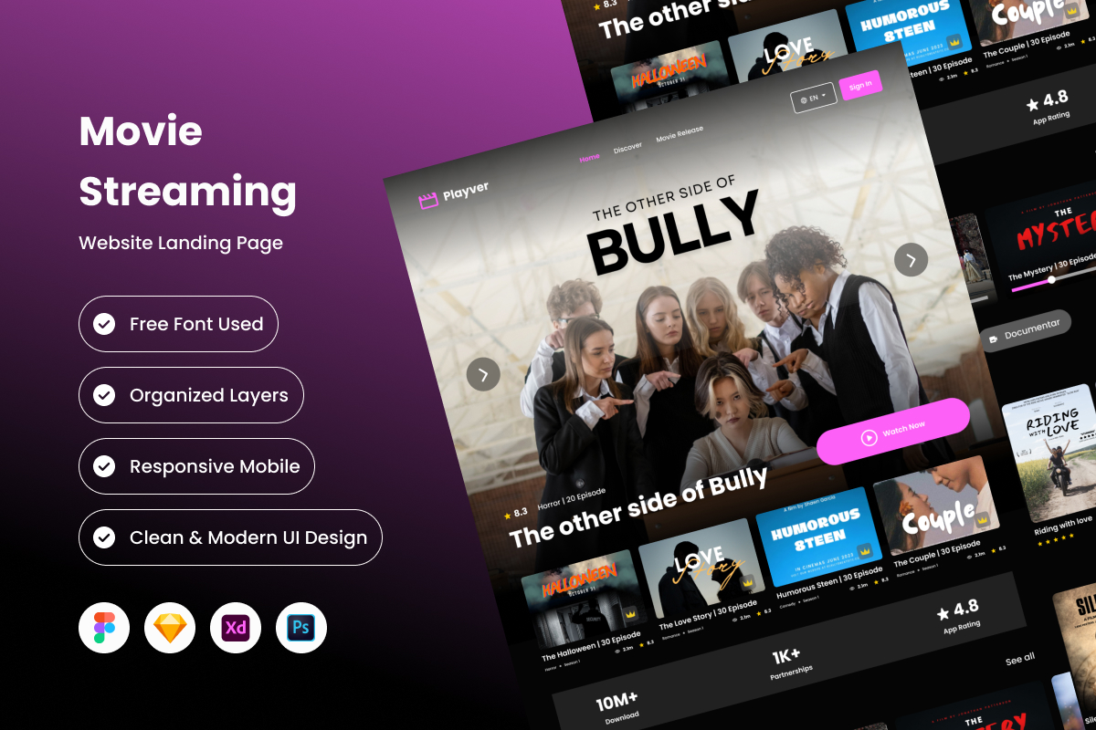 Elevate your movie streaming service with Playver V1, the landing page template crafted for ultimate user engagement. Playver V1 features a clean and modern design with vibrant visuals and smooth animations that create an immersive browsing experience. This template includes sections for featured movies, new releases, and personalized recommendations, providing users with a comprehensive view of your platform. With responsive design and fast loading speeds, Playver V1 ensures a seamless experience across all devices. Ideal for developers looking to create an engaging and effective landing page, Playver V1 combines style and functionality to attract and retain users. Launch your streaming service with Playver V1 and deliver an exceptional user experience.