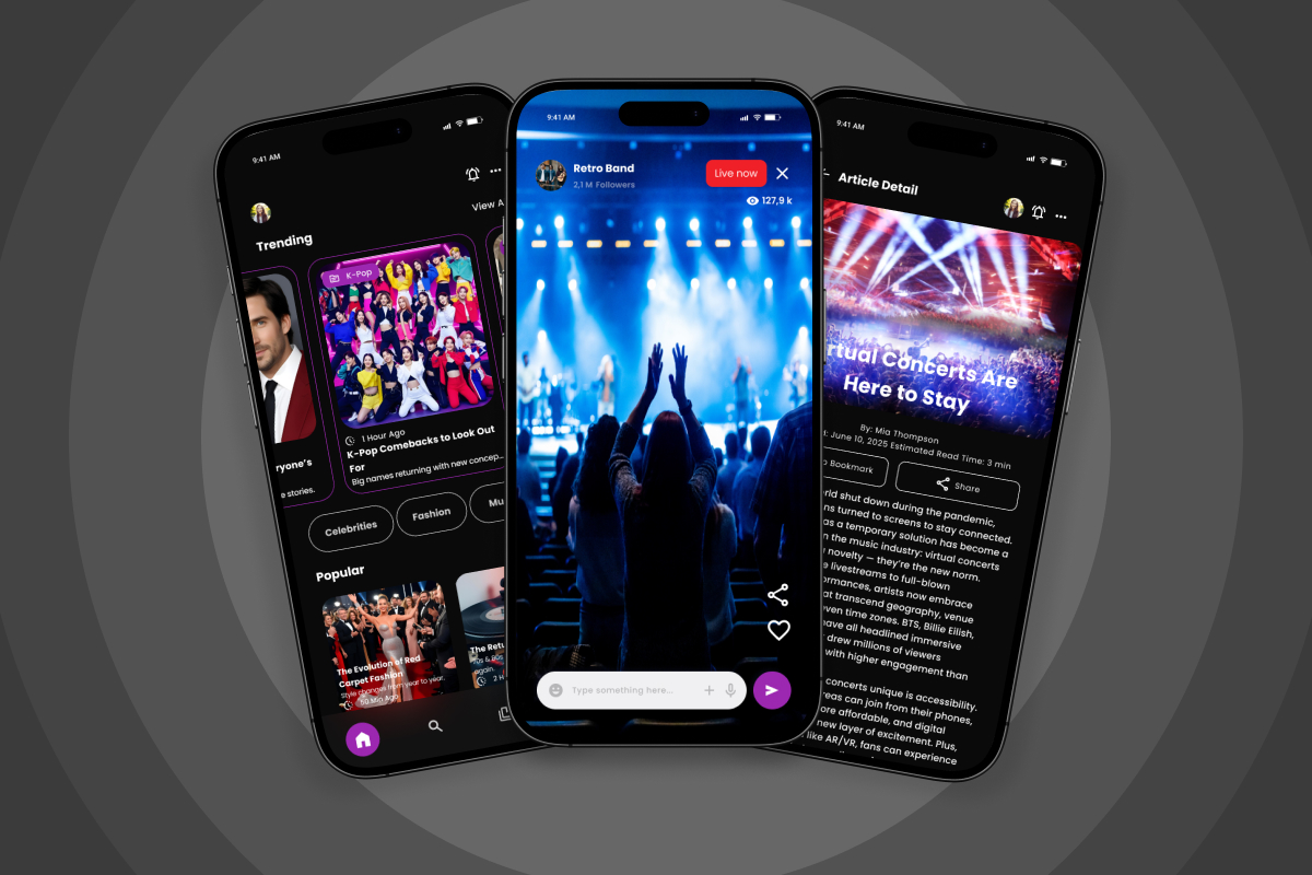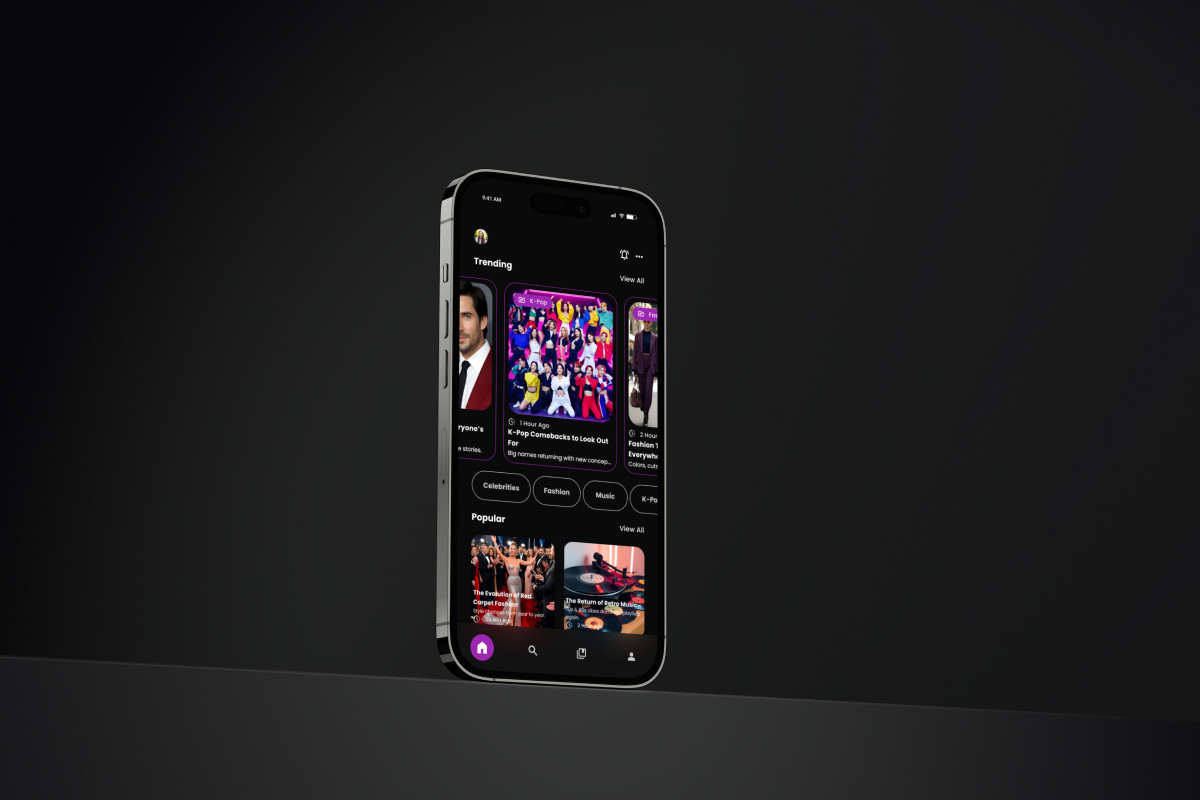 A vibrant and dynamic app design tailored for daily entertainment and viral news. Built to highlight engaging headlines, videos, and quick reads, this template is ideal for digital magazines or creators looking to capture attention in seconds.**Highlights:**