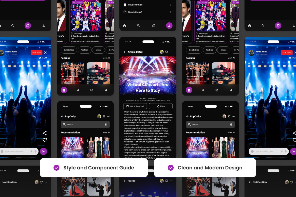 PopDaily - News Portal Mobile App Design Template UI Element