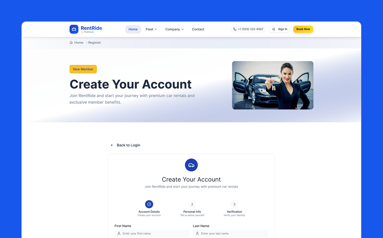 RentRide Premium Car Rental Theme Figma Template UI Element