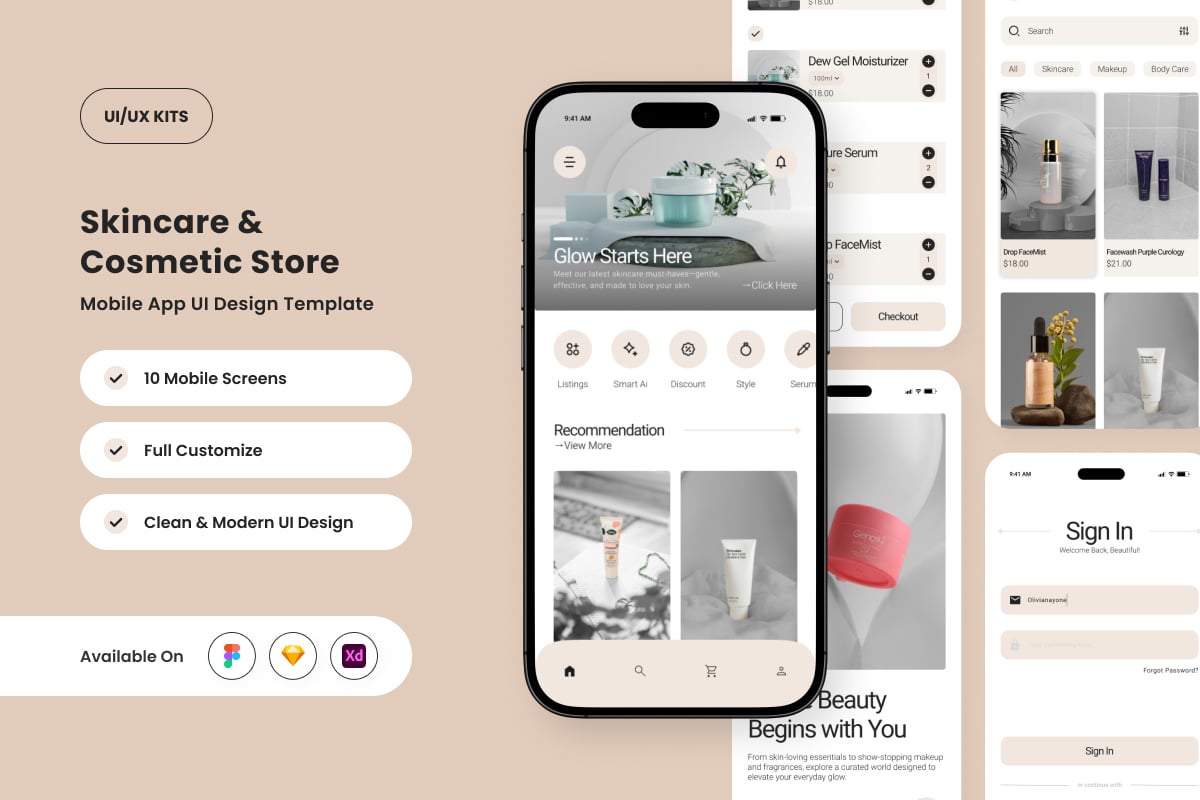 Seriss – Skincare and Beauty App UI Design Template UI Element