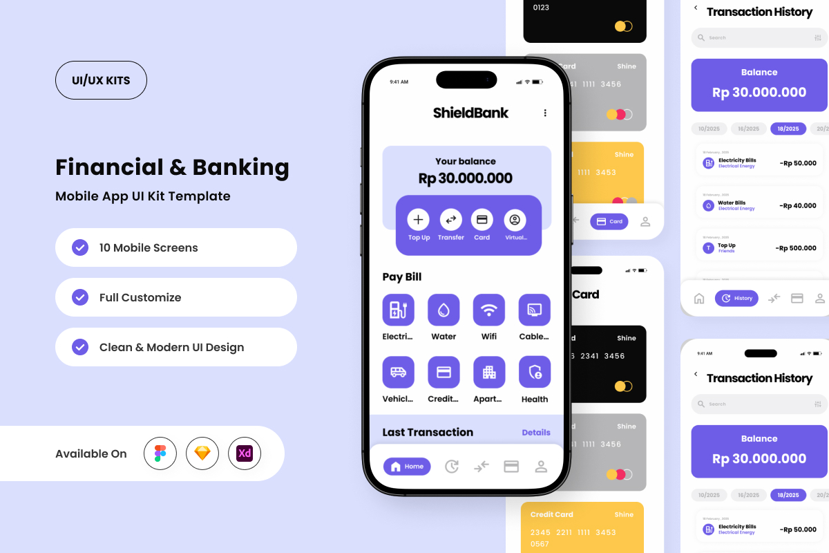 ShieldBank is a high-quality UI kit crafted for financial and digital banking applications. With a focus on security and usability, it features a modern, clean, and professional design that enhances the user experience. The sleek layout ensures smooth navigation, making financial transactions intuitive and hassle-free. Perfect for fintech startups, mobile banking apps, and digital wallets, ShieldBank allows businesses to establish trust with their users while maintaining a sophisticated look.