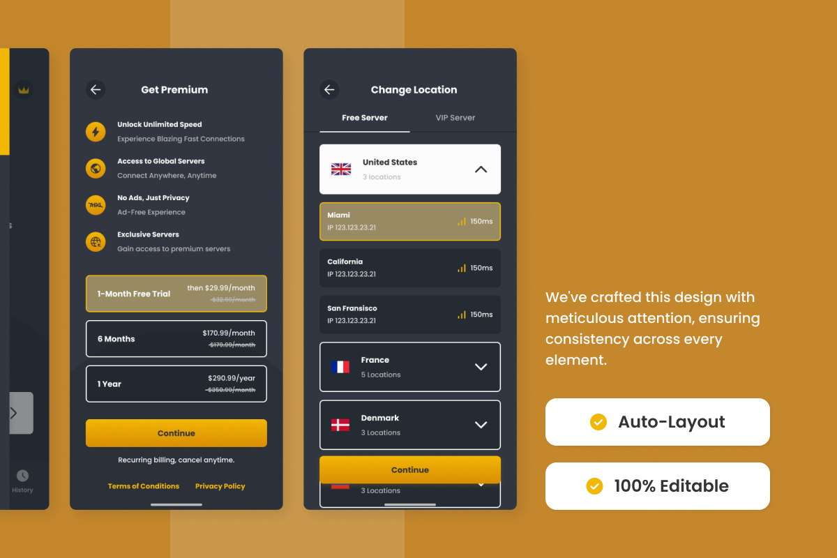 Protect your online presence with ShieldVPN - VPN Proxy Mobile App, a powerful and user-friendly app template designed to offer unparalleled security and privacy. ShieldVPN features a clean and intuitive interface, allowing users to connect to secure servers with just one tap. The app offers fast and reliable connections, ensuring smooth browsing and streaming experiences. With advanced encryption protocols, ShieldVPN guarantees your data is safe from prying eyes. Offer your users peace of mind with this comprehensive and stylish VPN solution.
