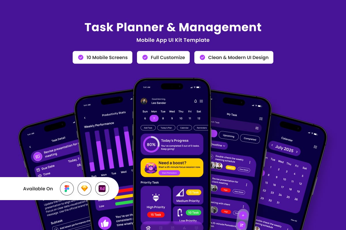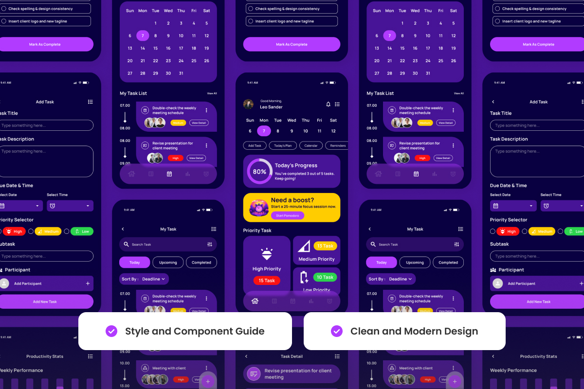 Taskova is a sleek and modern mobile app UI template designed for smart task planning, scheduling, and productivity enhancement. Featuring a clean layout, intuitive navigation, and bold typography, Taskova helps users organize their daily activities, set reminders, and track progress effortlessly. Whether you're building a personal productivity tool or a professional task manager app, Taskova offers a scalable and customizable design system built with user experience at its core. Perfect for developers, startups, and UI/UX designers aiming to launch a powerful productivity app with minimal design effort.**Highlights:**
