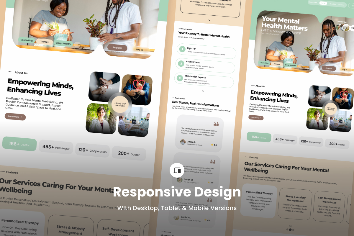 - Responsive landing page designs (Desktop, Tablet, & Mobile version)